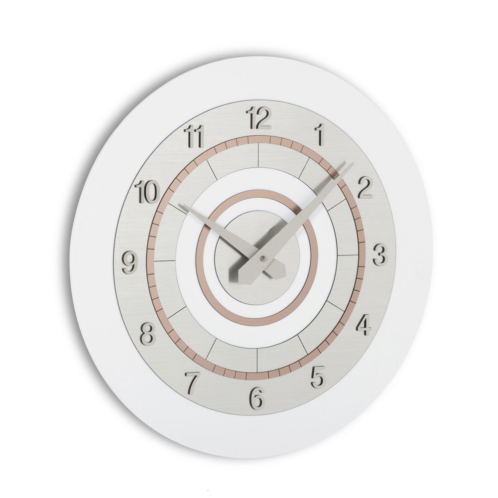 Een perfecte mix van grafisch ontwerp en functionaliteit, deze wandklok gemaakt van high-density semi-geëxpandeerd PVC è een echte blikvanger voor wie graag decoreert met persoonlijkheid. Het samenspel van concentrische cirkels creëert een hypnotiserend en dynamisch visueel effect dat onmiddellijk de aandacht trekt en de muur in een waar kunstwerk verandert.