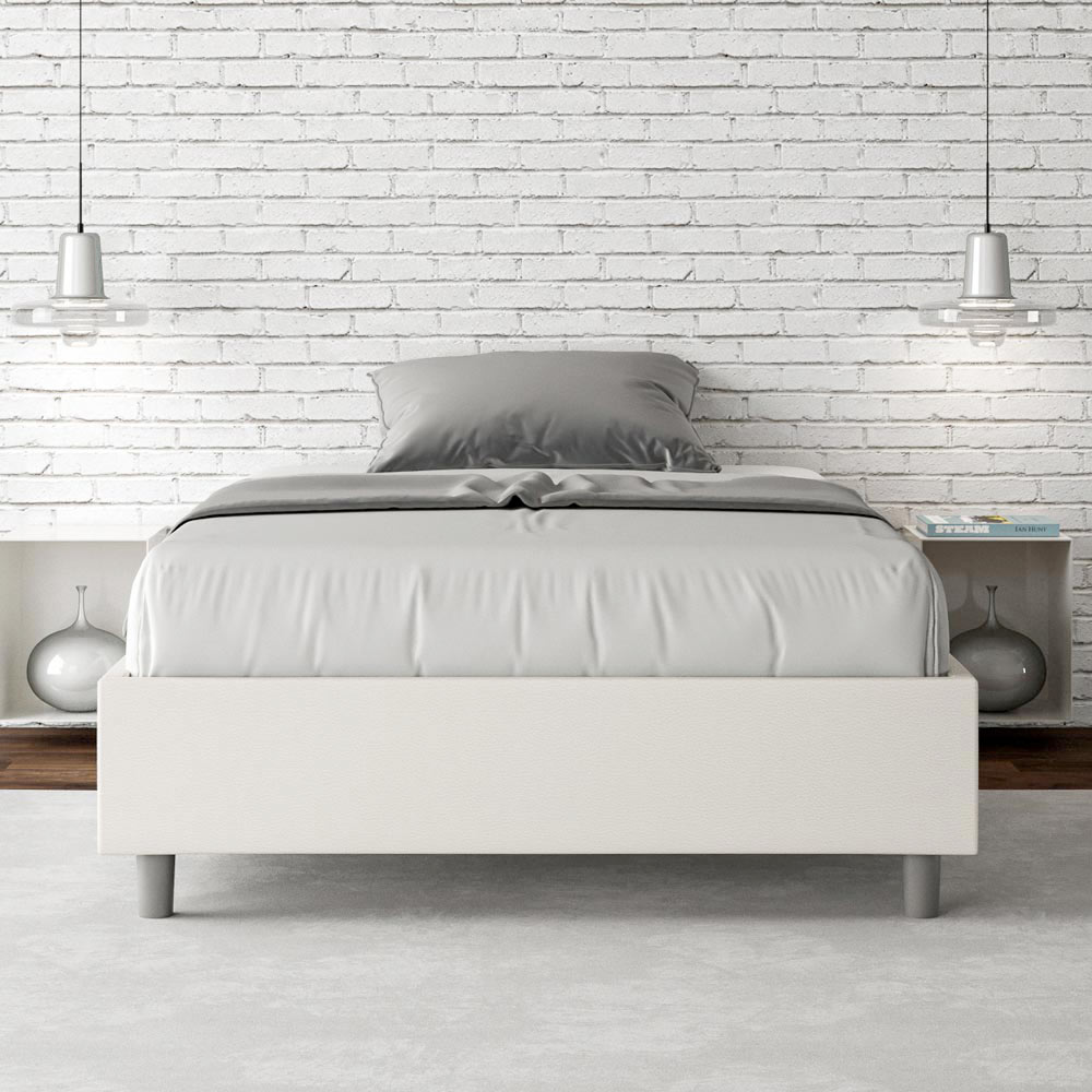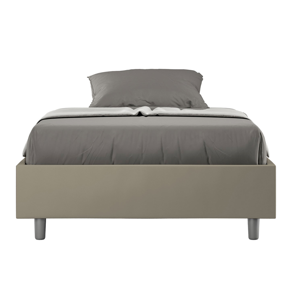 Frans bed 140x200 cm, gewatteerd en bekleed met kunstleer, gemaakt in Italië.