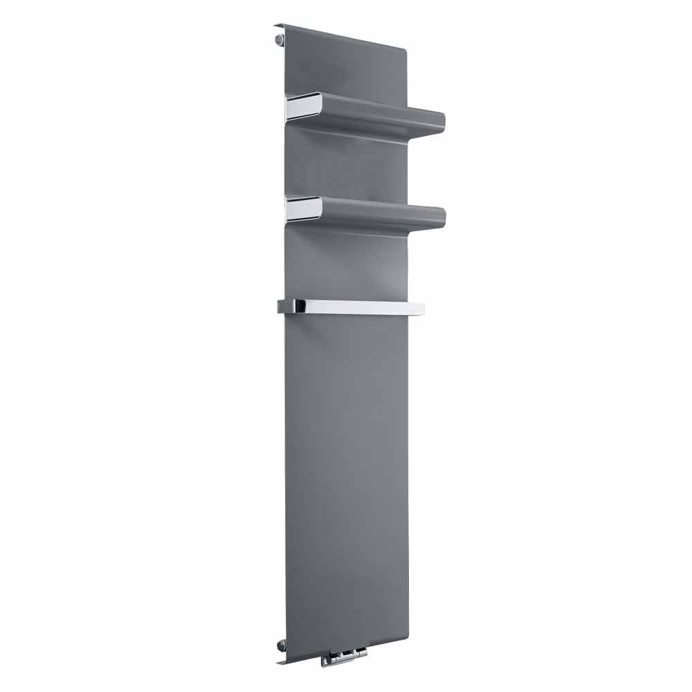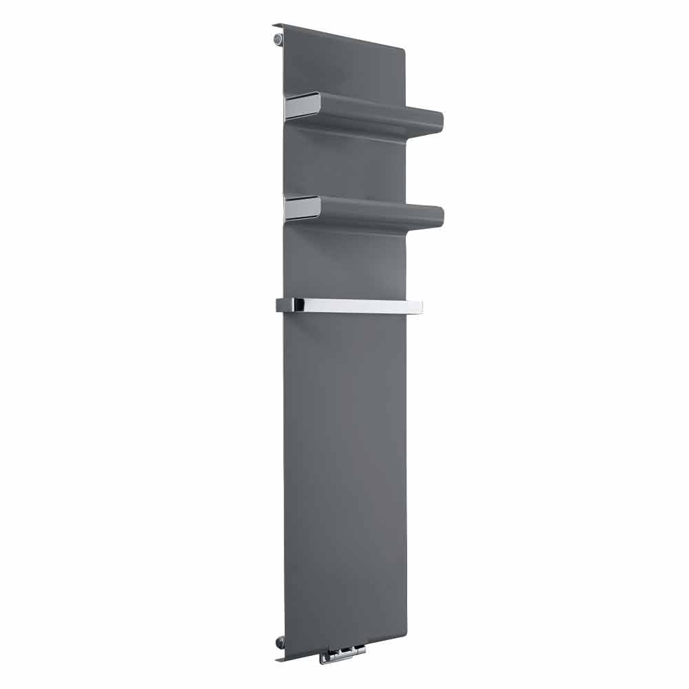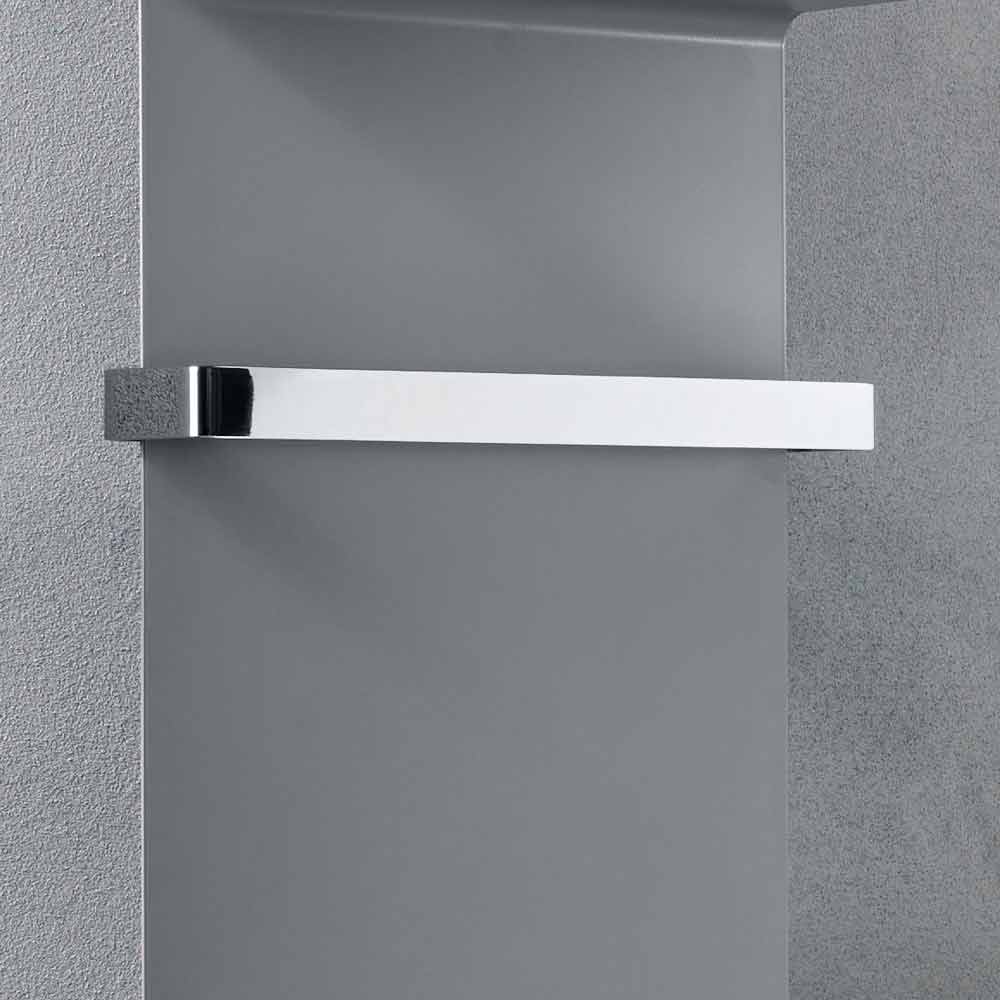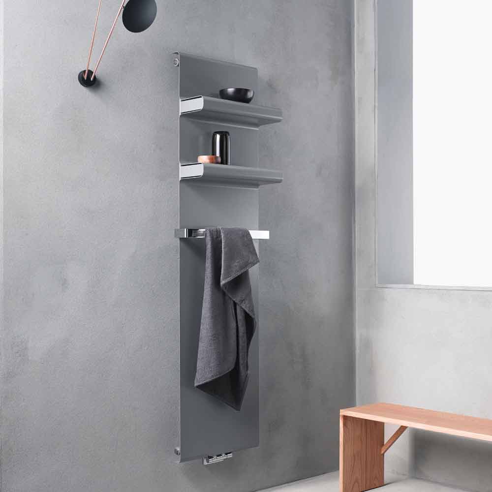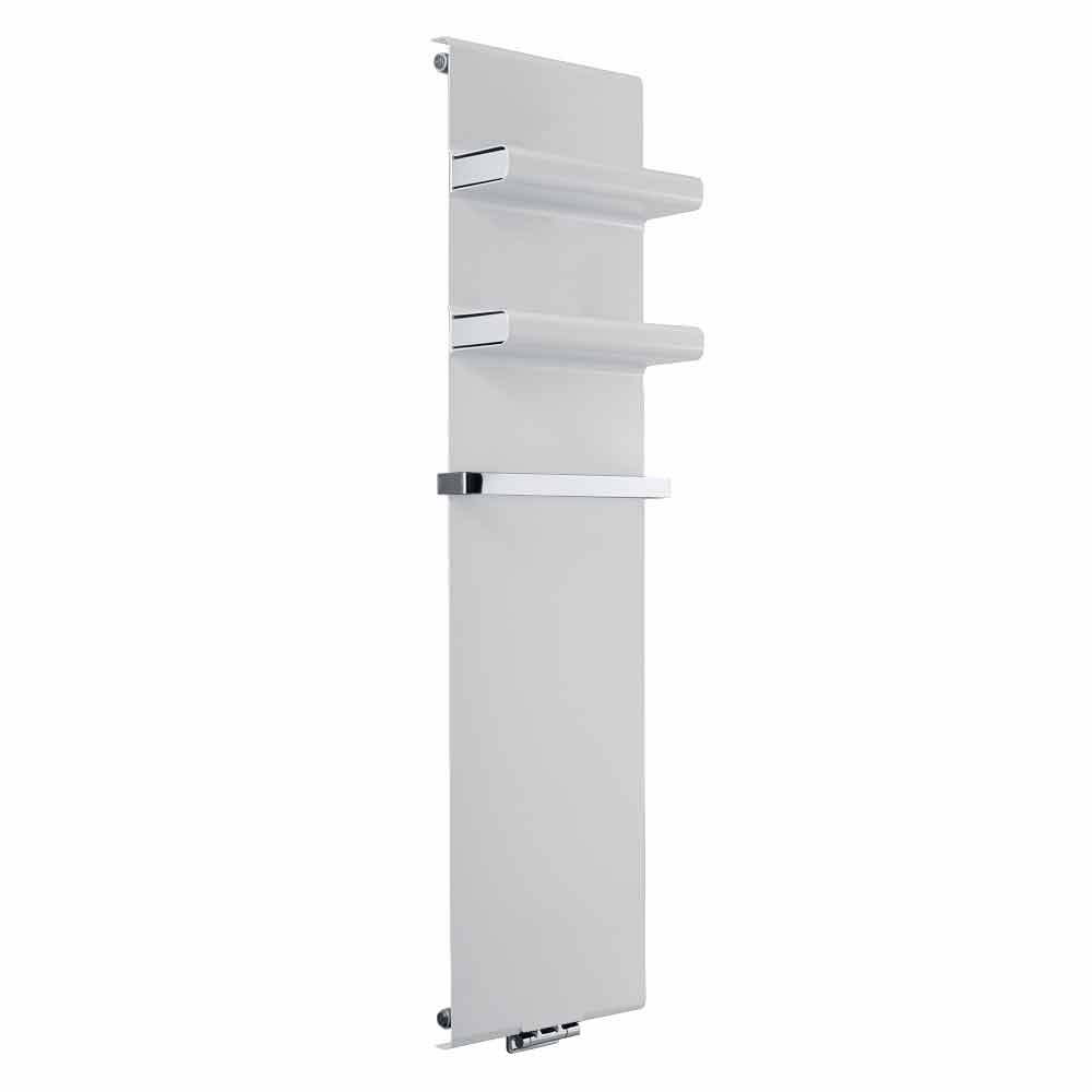 hydraulische stralingsplaat heeft een modern en minimalistisch design met praktische en elegante geïntegreerde planken inclusief hoes en een chromen handdoekstang, die de radiator 4 cm breder maakt.