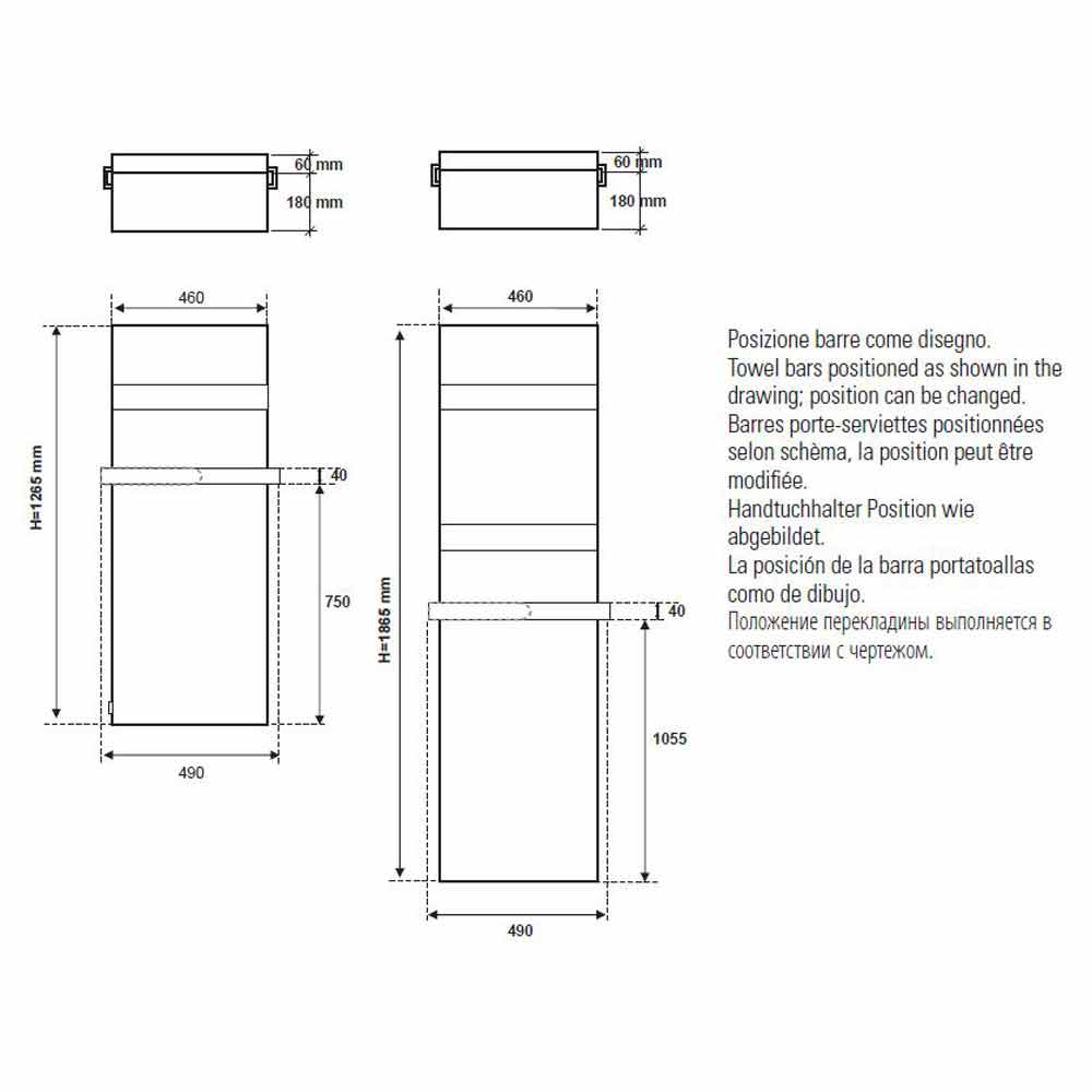 Verkrijgbaar in verschillende maten *:- H 1265 x L 460 x Inter. 1160 mm x uitgang w (Δt50 *) 521; Opbrengst w (At30 *) 275; Uitgang w (Δt26 *) 230 (1 plank);