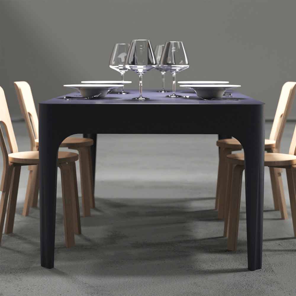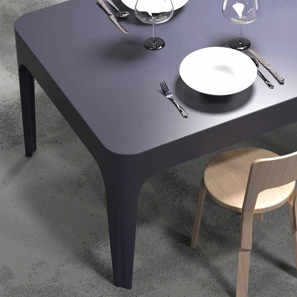 Tafel gemaakt uit één element, heeft strakke en lineaire vormen die hem een moderne en actuele uitstraling geven. Gekenmerkt door de belangrijke rand en de snit zorgt voor vorm aan de benen. Hij past goed als eettafel of bureau in een moderne omgeving of met klassieke referenties zoals kaders en stucwerk. Verkrijgbaar in twee kleurvarianten: nachtblauw (RAL5011) of wit (RAL9003), kies degene die het beste bij u past!