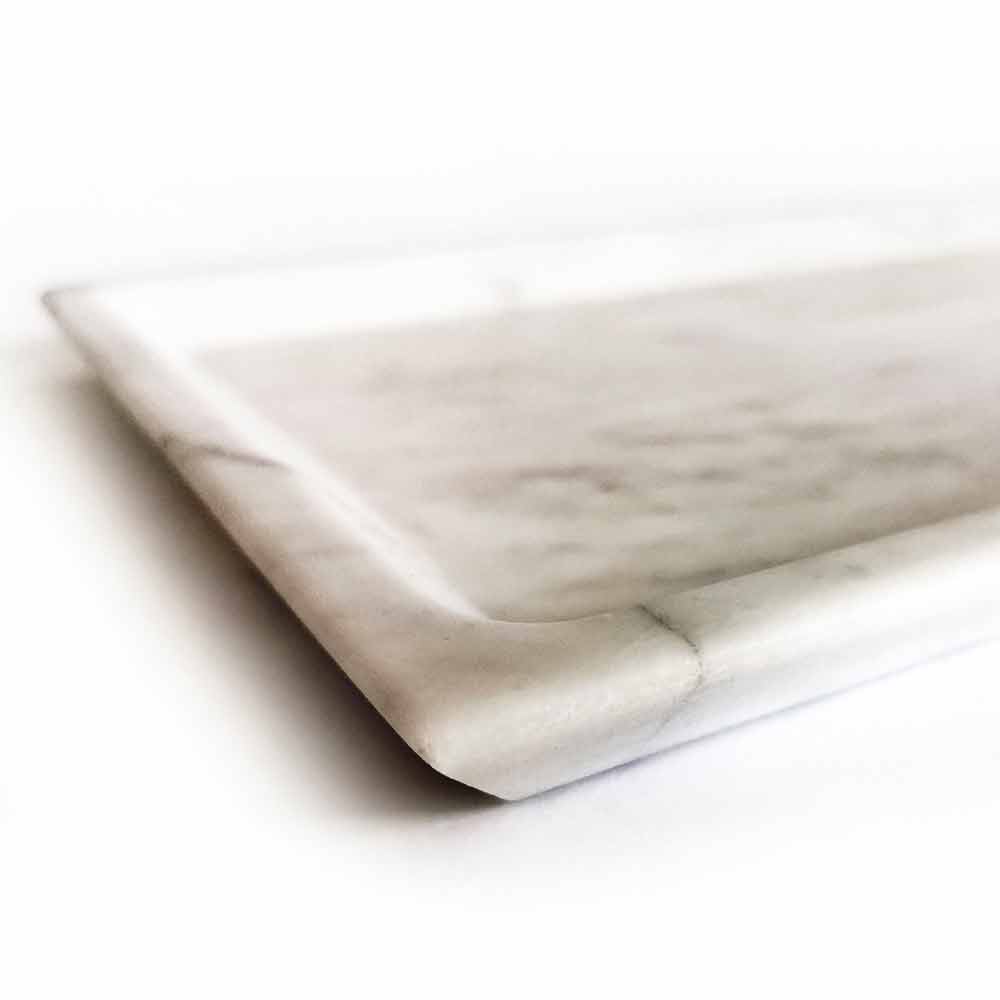 Rechthoekig dienblad gemaakt van modern wit Carrara-marmer Made in Italy.