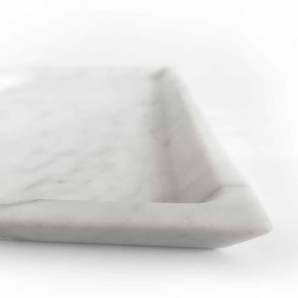 Rechthoekig dienblad gekenmerkt door eenvoudige en harmonieuze lijnen waardoor het product perfect past bij moderne en elegante inrichtingsstijlen. Ideaal om te gebruiken in de keuken of eetkamer maar ook als plank voor composities van badkameraccessoires, dit dienblad is handgemaakt in Italië in wit Carrara-marmer door deskundige vakmensen die dankzij de gebruikte technieken een kwalitatief hoogstaand en sterk eindproduct creëren visuele impact, perfect als decoratief element met een verfijnde smaak.