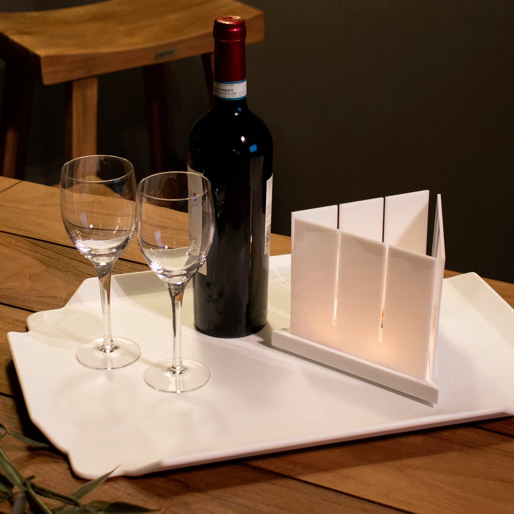 elegant en veelzijdig ontwerp, omdat het ook ondersteboven als snijplank kan worden gebruikt.