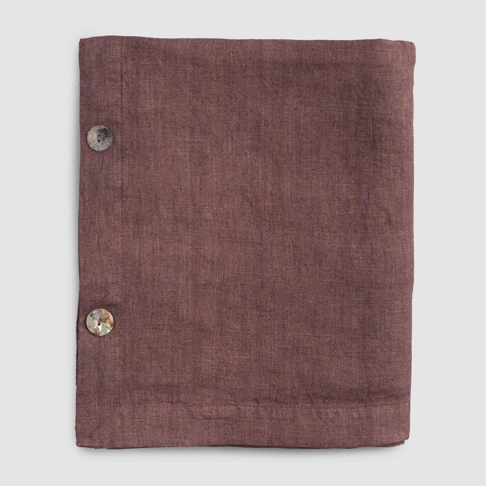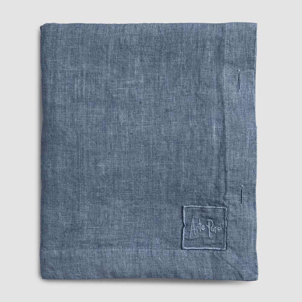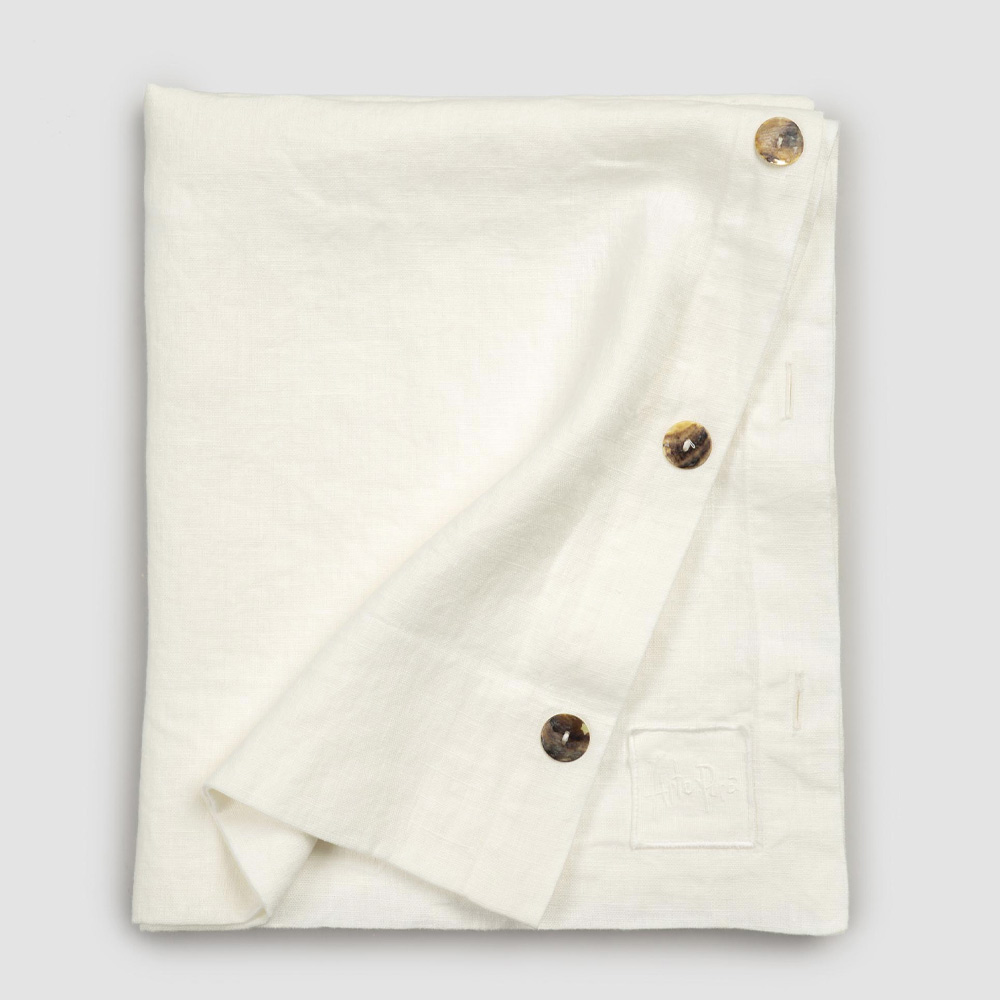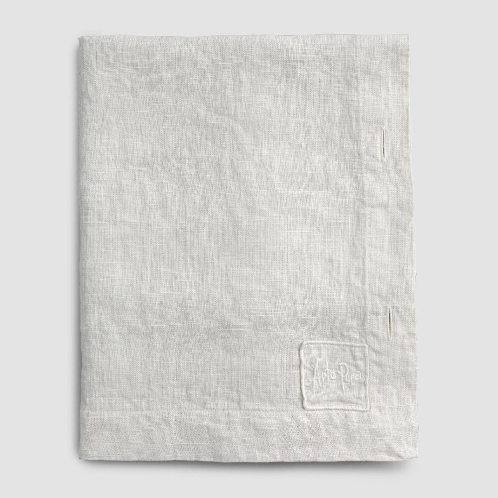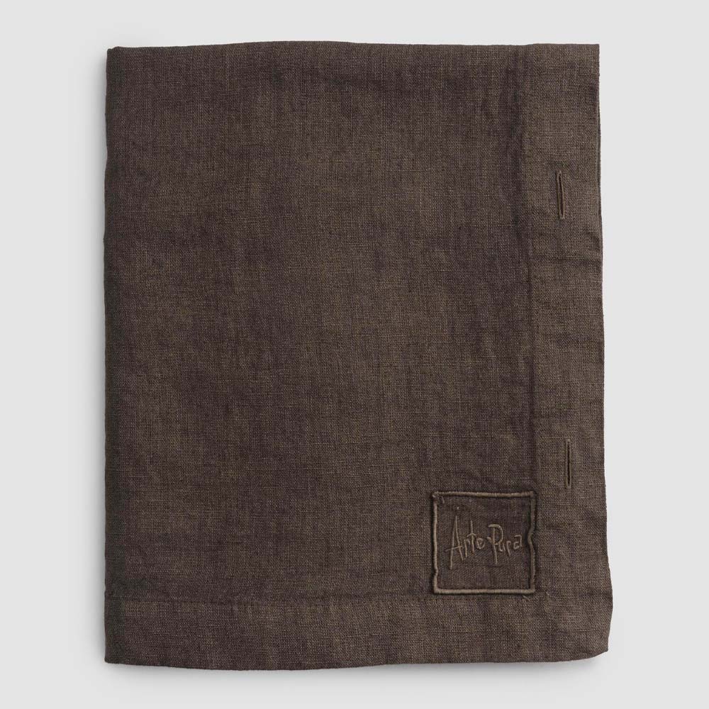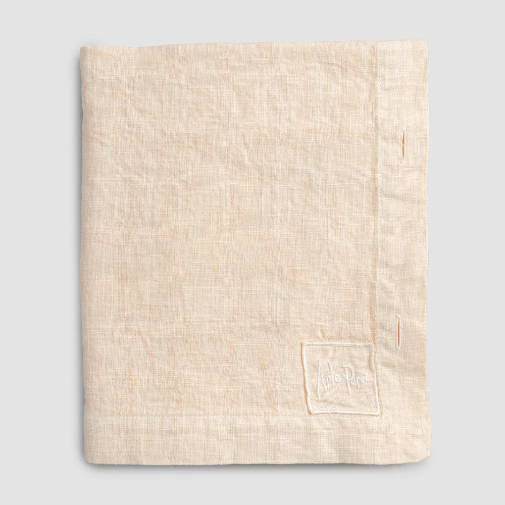 Modulair tafelkleed van gekleurd linnen met parelmoeren knopen, handgemaakte kwaliteit made in Italy.
