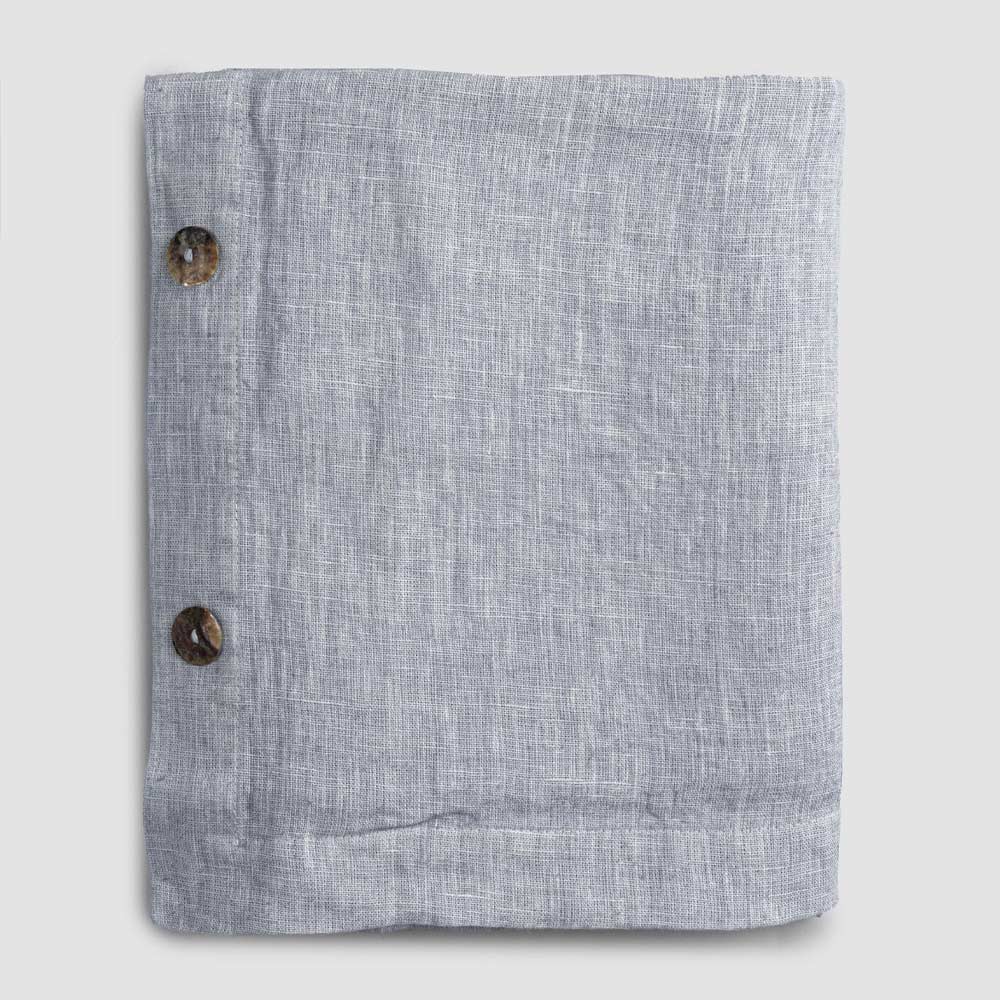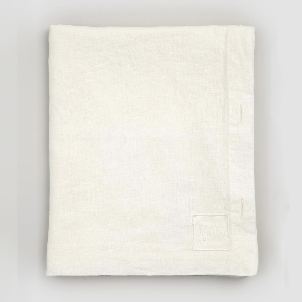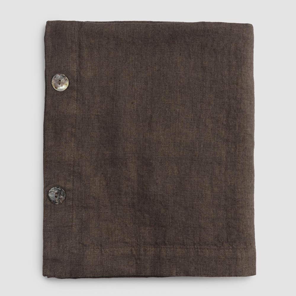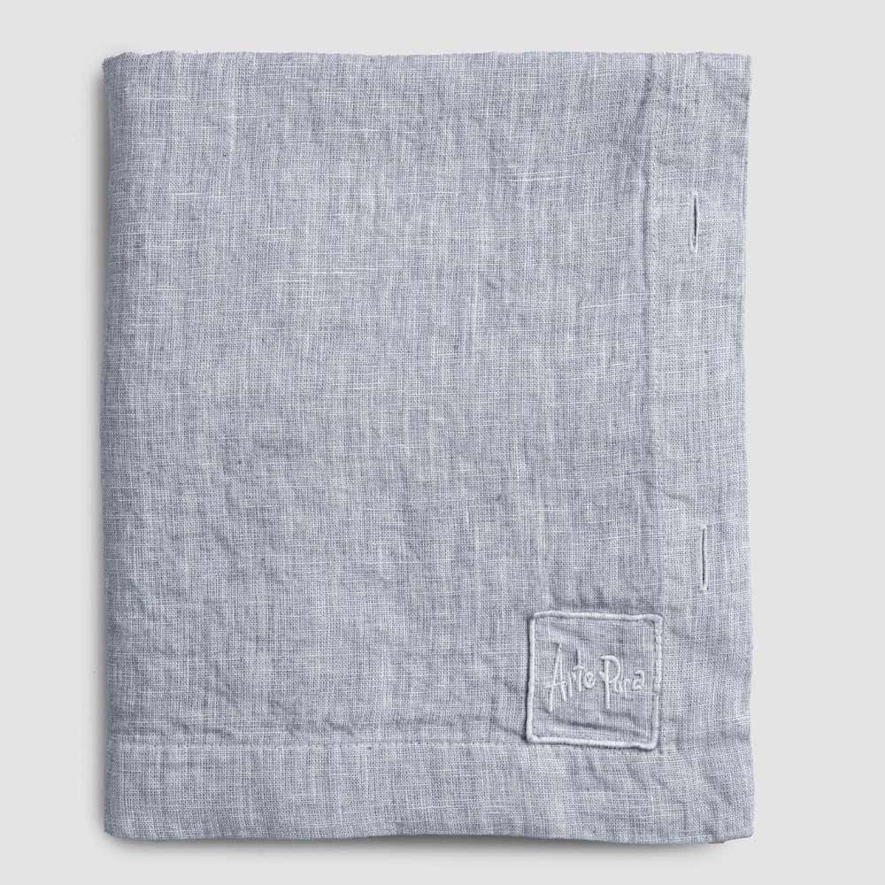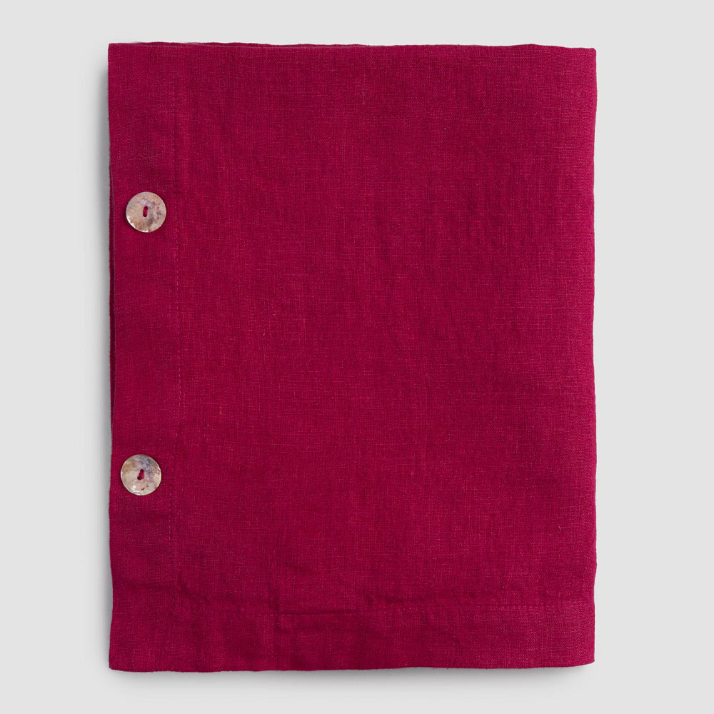 Modulair tafelkleed van gekleurd linnen met parelmoeren knopen, handgemaakte kwaliteit made in Italy.