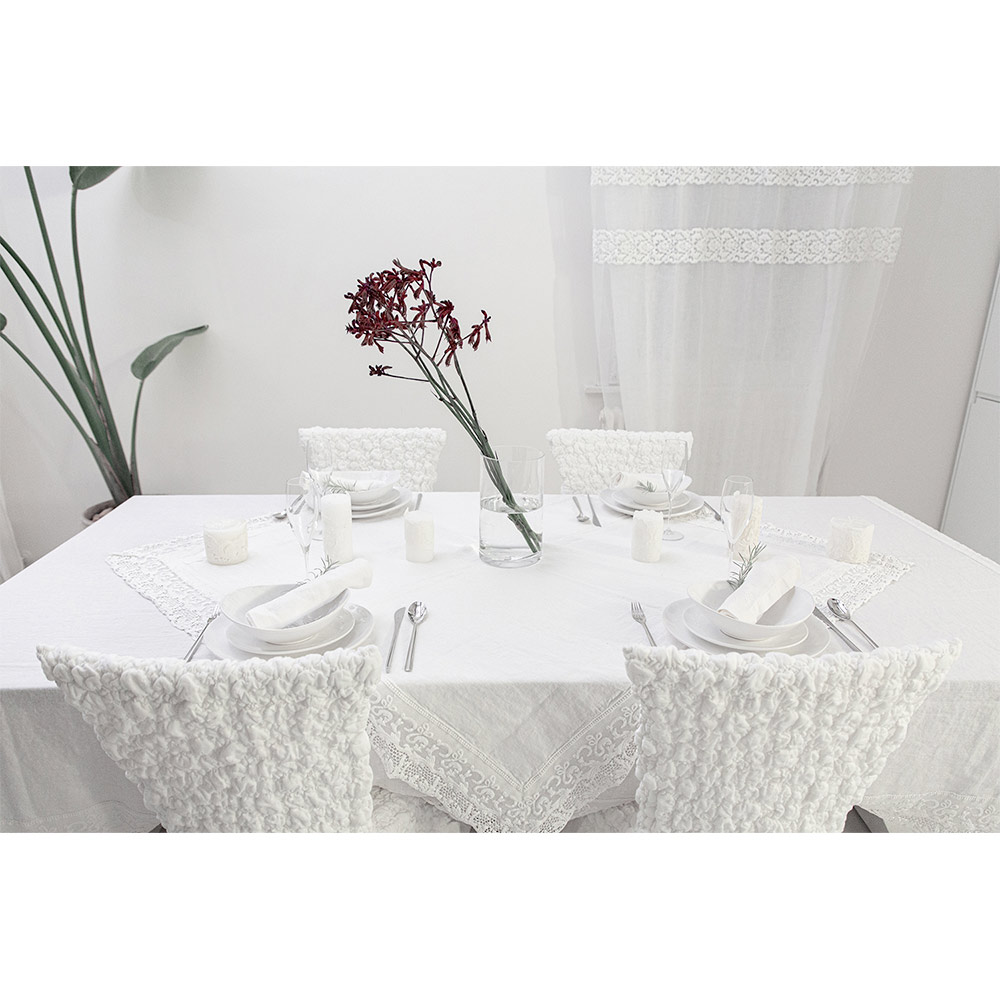 Groot rechthoekig tafelkleed van puur linnen met randen met of zonder kant, luxe handgemaakt ontwerp gemaakt in Italië.