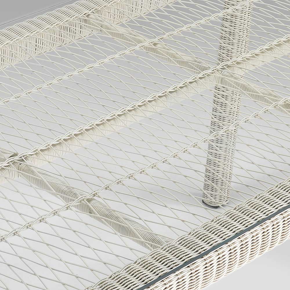 De weefstijl is verfijnd en delicaat en samen met de zeer hoge kwaliteit van de materialen en de beslissende vormen maken deze tafel perfect voor interieur- en buiteninrichting, zowel voor privé- als contractomgevingen zoals terrassen, veranda's, tuinen maar ze vinden ook een perfecte plaats bij het zwembad.