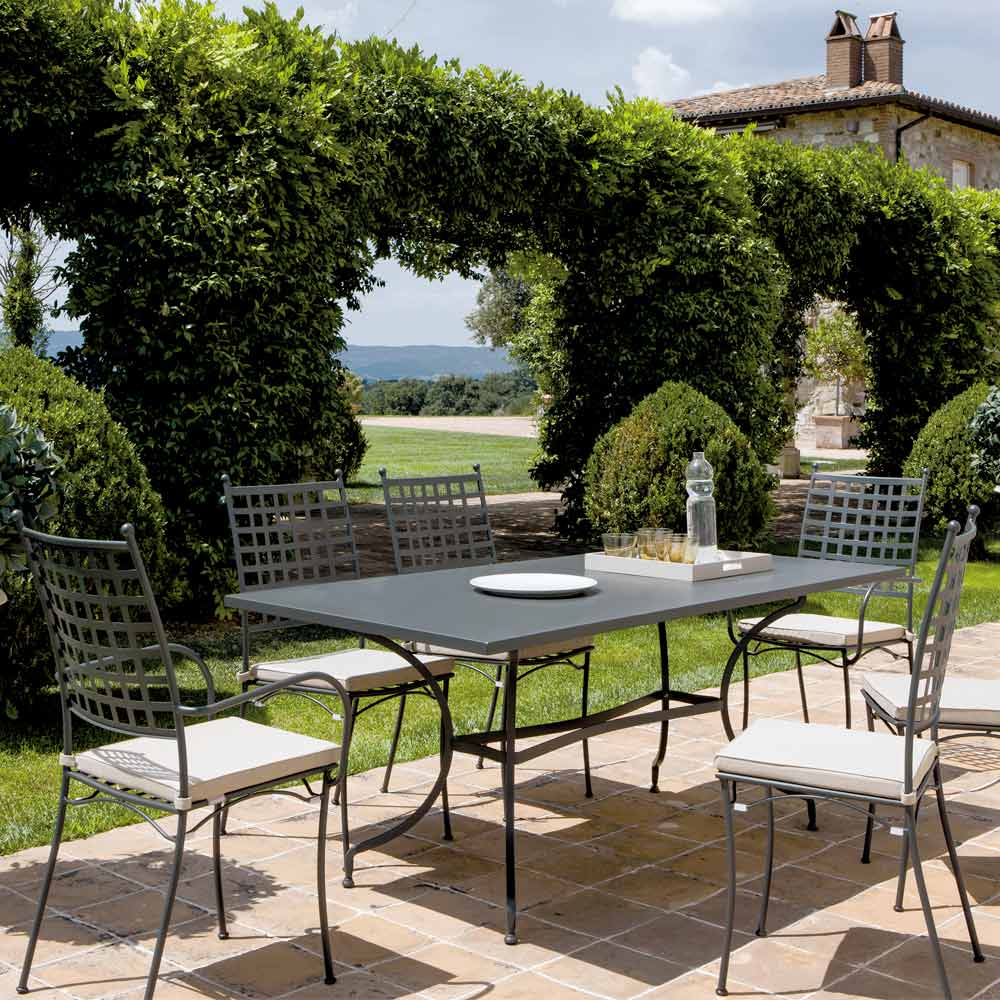 Deze buitentafel is ontworpen als een uitstekende bondgenoot voor lunches of diners in de buitenlucht. Hij is bovendien extreem duurzaam dankzij de kwaliteit van het materiaal, 100% made in Italy . De stalen constructie is versterkt door een galvanisatieproces , waardoor hij bestand is tegen corrosieve en weersinvloeden . De tijdloze stijl van deze tafel is de meest klassieke verheerlijking van Italiaans vakmanschap, perfect om een vleugje tijdloos classicisme te geven aan buitenruimtes zoals terrassen, veranda's, tuinen of zwembaden.