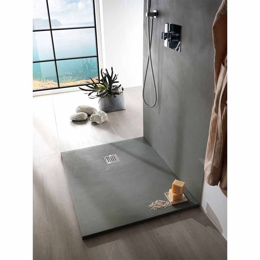 Moderne rechthoekige douchebak 100x80 in harsbetoneffect.
