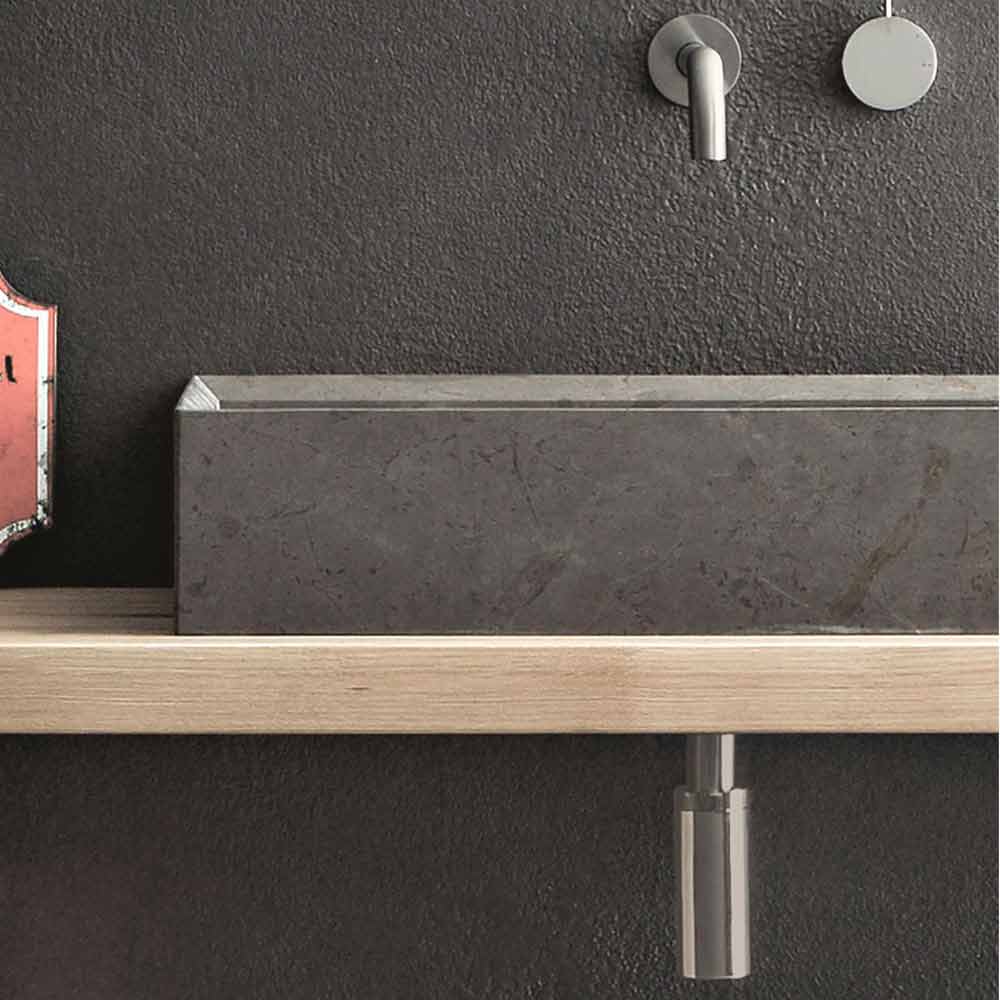 Rechthoekige opzetwastafel, modern design in natuursteen, zonder afvoergat.