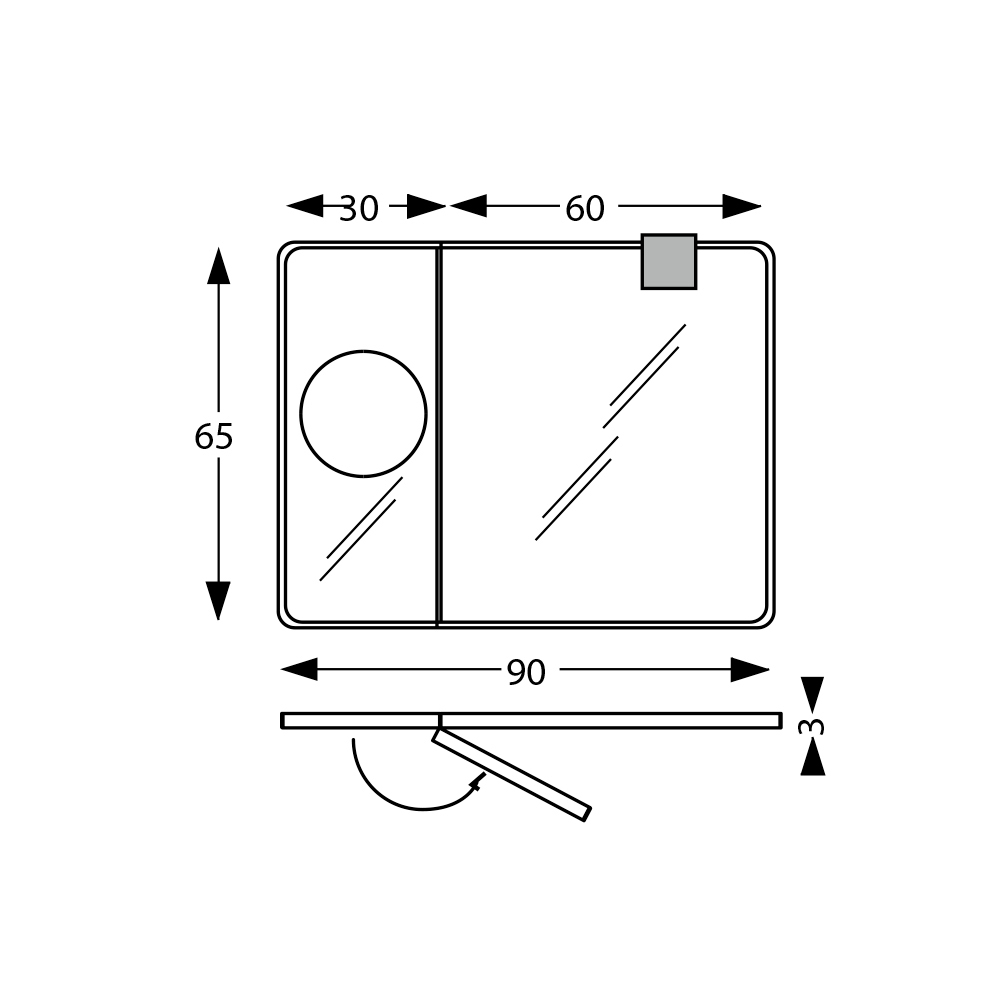 Het houten frame , geselecteerd vanwege zijn kwaliteit en schoonheid, voegt een vleugje natuurlijke warmte toe aan de algehele elegantie van het object, terwijl het beweegbare deel opent met een vergrotende spiegel , een ingenieus kenmerk dat praktische en geavanceerde functionaliteit biedt.