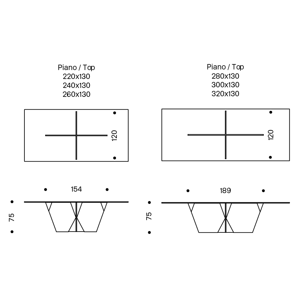 - L 320 x P 130 x H 75 cm.
