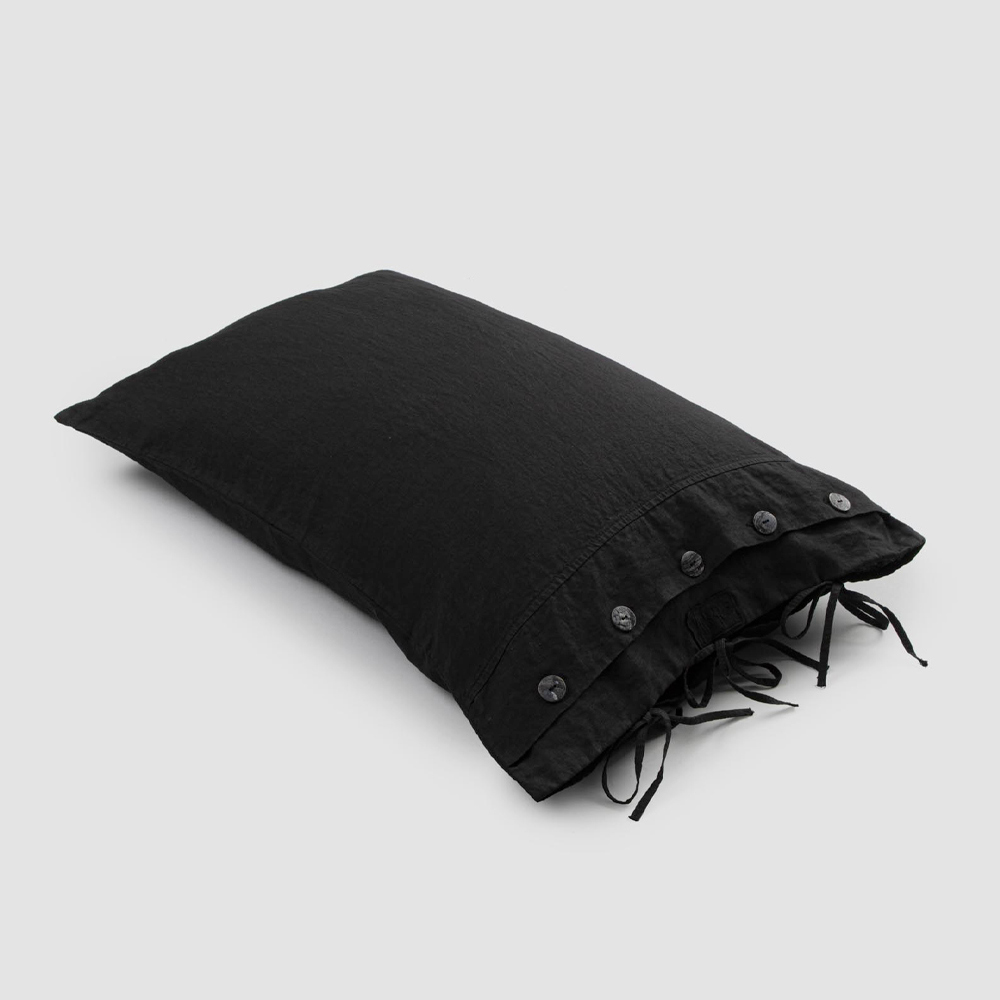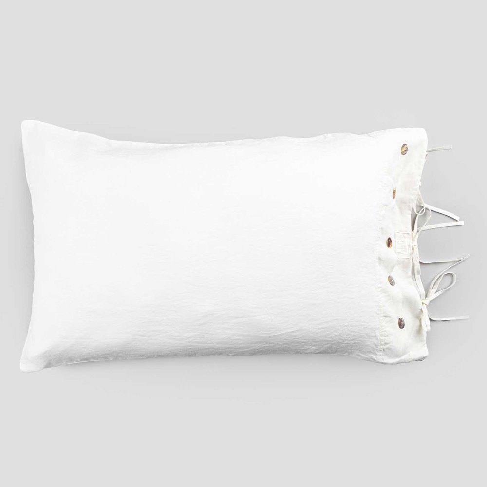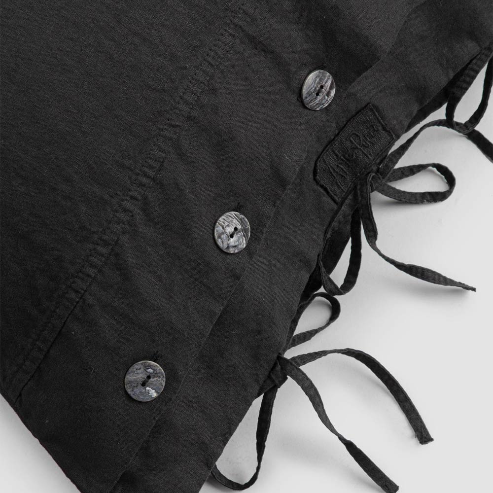 Luxe kussensloop in wit of zwart linnen met knopen en veters, made in Italy kwaliteit.