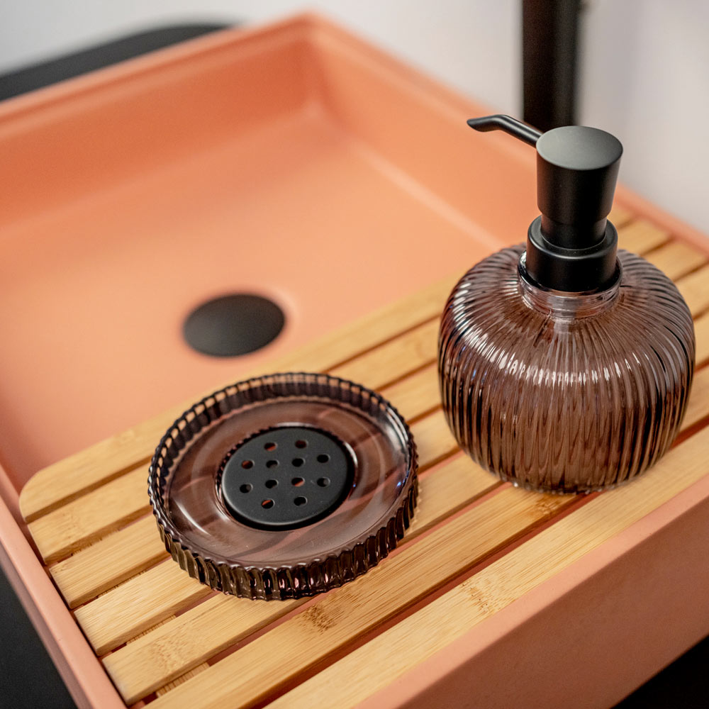 De rechthoekige terrazzo- spoelbak heeft een levendige Mali-oranje afwerking en is daarmee een echt stijlstatement in de wereld van interieurdesign. Het is niet alleen een statement in etnochistische en popstijl , maar biedt ook praktische functionaliteit met zijn ruime badkuip . Het afneembare bamboeblad is een ingenieus juweeltje, perfect om accessoires en cosmetica bij de hand te houden. Dit stuk is ideaal om een vleugje kleur en persoonlijkheid toe te voegen aan elke moderne badkamer en past perfect bij de meest populaire wandbekleding. Een object dat niet onopgemerkt blijft, klaar om het visuele middelpunt van uw badkamerruimte te worden.