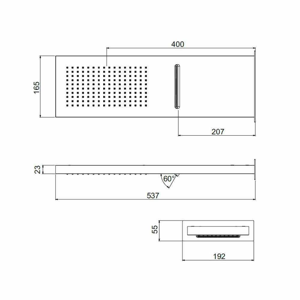 Rechthoekige roestvrijstalen douchekop met dubbele straal Made in Italy.