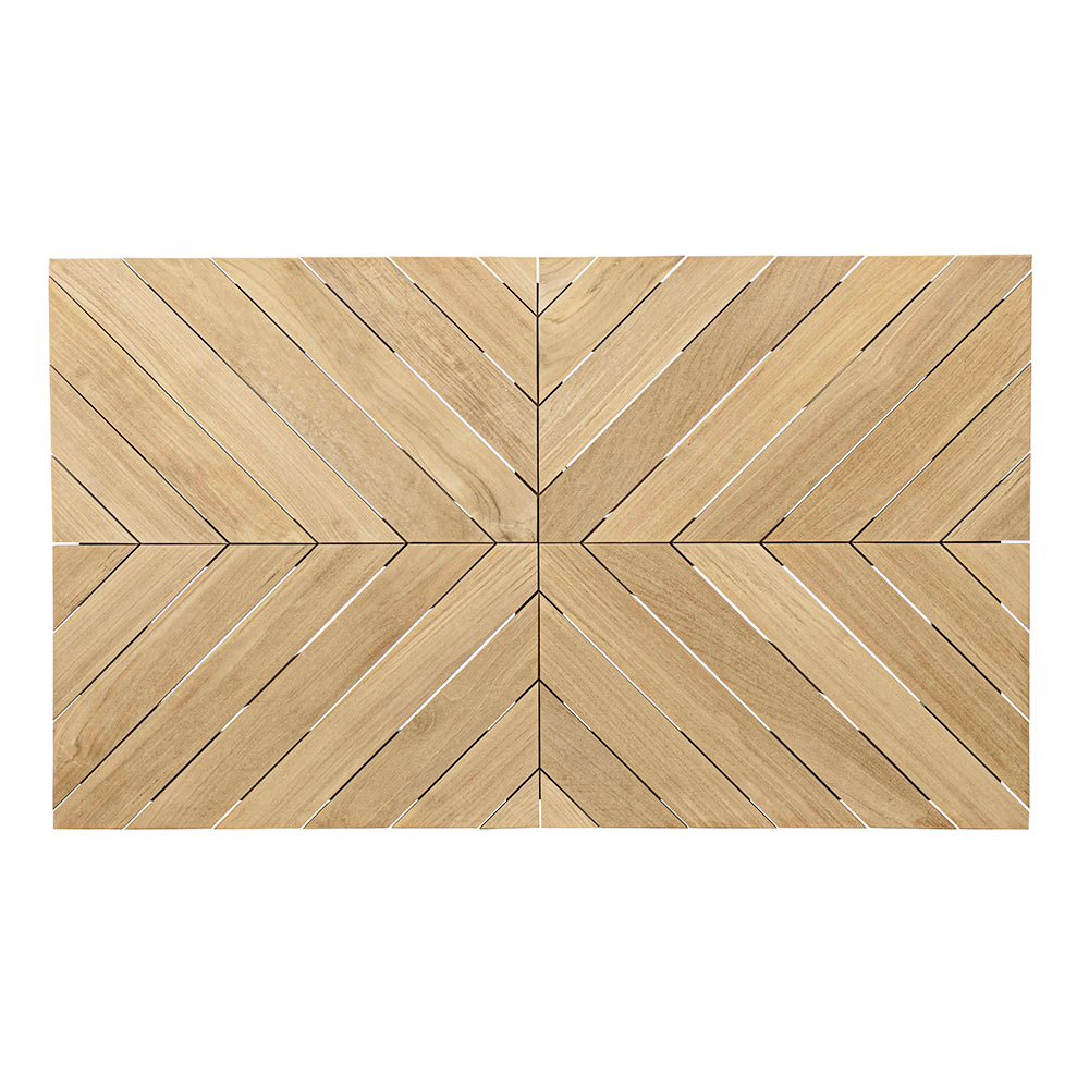 Rechthoekige salontafel voor buiten met blad en structuur in teakhout.