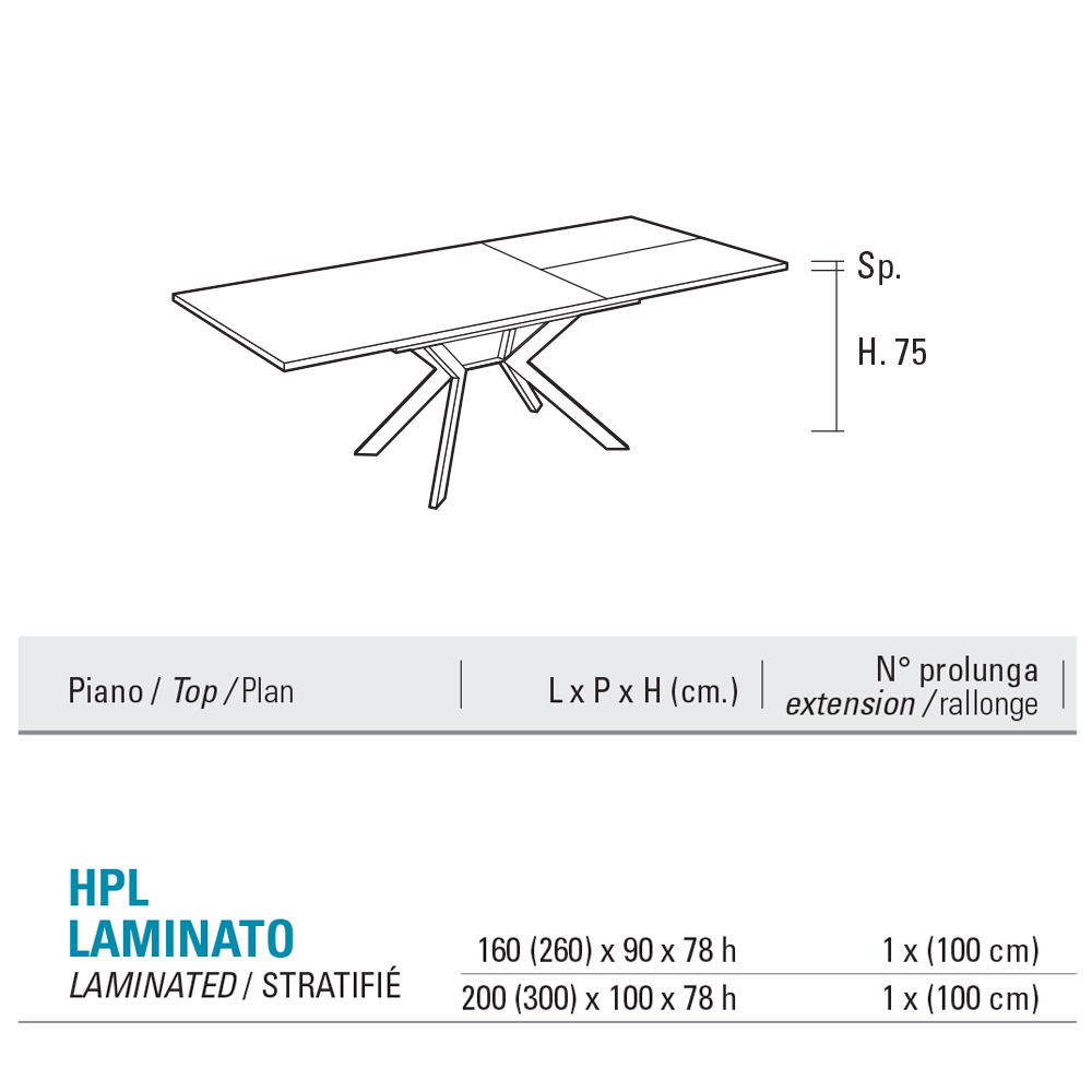 Het rechthoekige HPL- blad biedt een verfijnde en robuuste uitstraling, perfect voor moderne omgevingen. Het oppervlak is slijtvast en ideaal voor dagelijks gebruik zonder in te leveren op esthetiek. Dankzij het geïntegreerde uitschuifsysteem kunt u de tafel eenvoudig uitschuiven, waardoor hij perfect is om vrienden en familie te ontvangen bij elke gelegenheid.