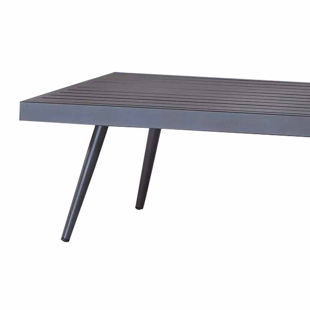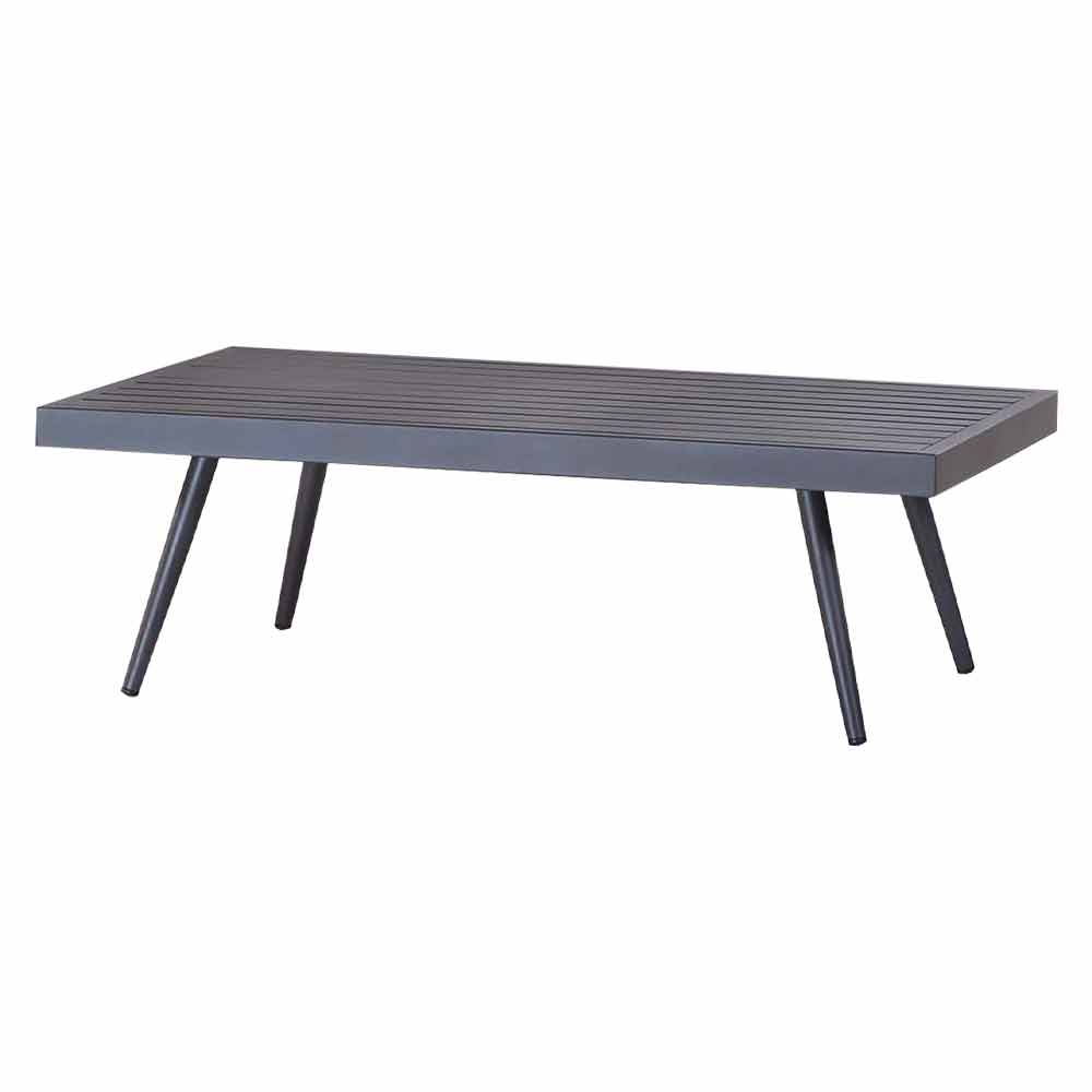 Salontafel voor buiten gemaakt met blad en structuur in antraciet gelakt aluminium. Veelzijdigheid en essentie zijn de belangrijkste kenmerken die dit inrichtingsaccessoire voor buitenruimten het beste omschrijven, dat zich dankzij de sobere nuance en de eenvoudige vormen die het schetsen perfect aanpast aan elke inrichtingssituatie en tegelijkertijd een praktisch decorplan biedt. ondersteuning en een eclectisch decoratief element . Bovendien zorgen de gebruikte materialen voor een resistent product met uitstekende duurzaamheid, waardoor het een perfecte keuze is voor wie op zoek is naar een salontafel die functionaliteit en design kan garanderen.