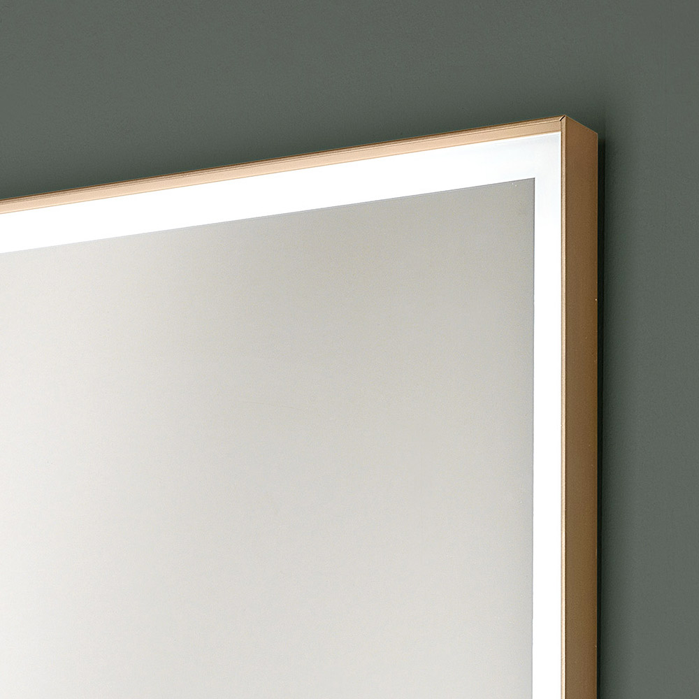 Rechthoekige wandspiegel met metalen frame in 4 afwerkingen en led-verlichting, gemaakt in Italië.