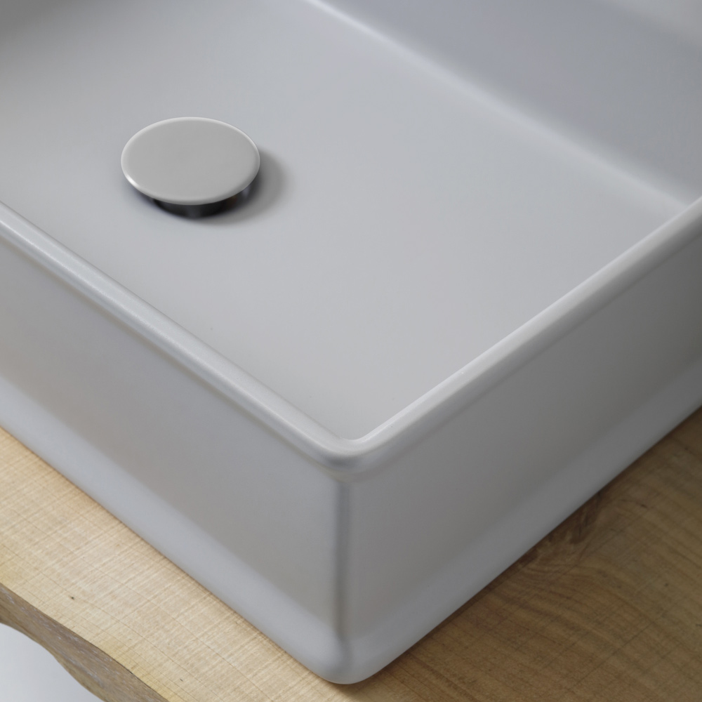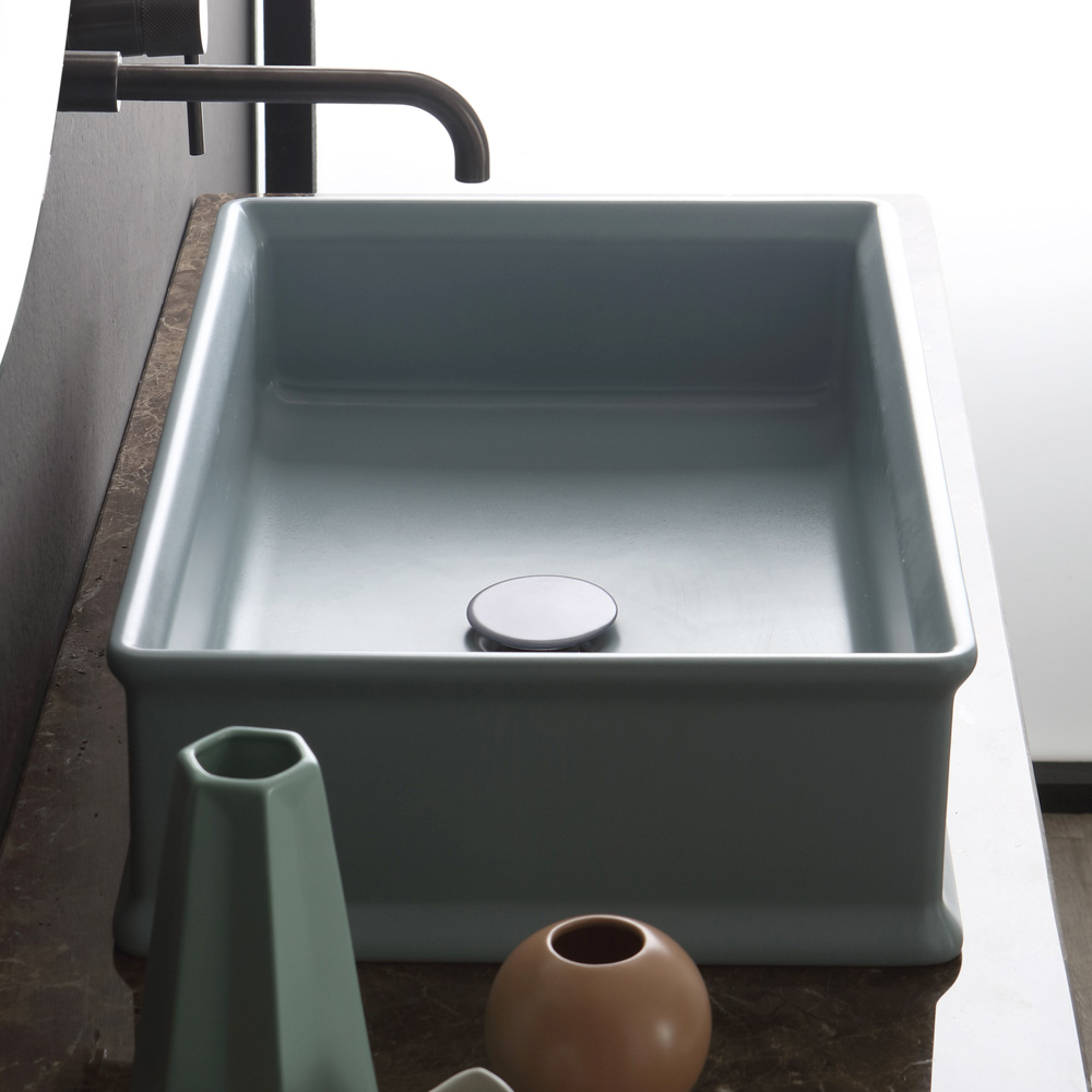 Rechthoekige aanrecht wastafel gemaakt van ondoorzichtig gekleurd keramiek door een 100% Made in Italy vakmanschap . Een ontwerp dat wordt gekenmerkt door sterke en imposante lijnen en kenmerken maakt dit meubel tot een perfecte eigentijdse herinterpretatie van een esthetiek met een retro ziel dankzij het kleurgebruik dat leven geeft aan een exclusief en verfijnd resultaat .