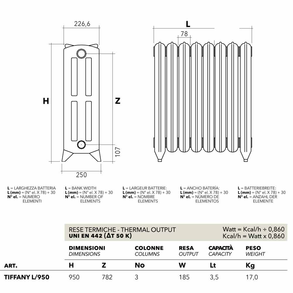Monteerbare gietijzeren elementen, oog voor detail, een unieke stijl: Tiffany is een radiator die geen compromissen sluit. Zijn uitbundige persoonlijkheid verbetert elk type omgeving. Symbool en functie vallen op voorbeeldige wijze samen: de rijkdom van de decoratie, de bochtigheid van de lijnen, de zachtheid van de vorm vallen op tegen de achtergrond van essentiële, geometrische nauwkeurigheid. Tiffany verwarmt de omgeving visueel en fysiek.