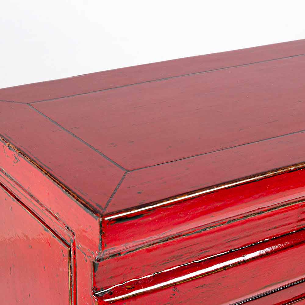 Rode consoletafel in iepenhout met 3 lades in vintage design.