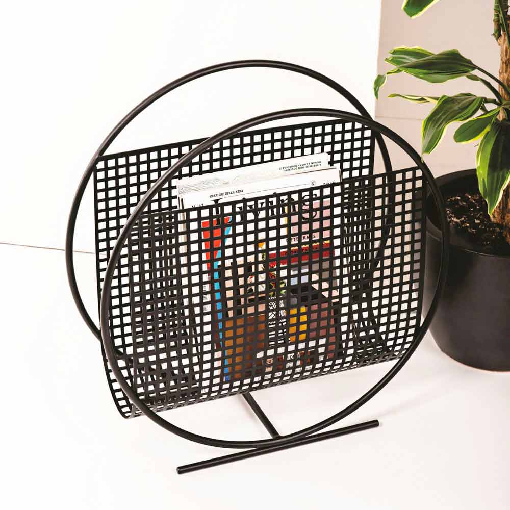 Geometrisch en modern design vloertijdschriftenrek gemaakt van Made in Italy staal.