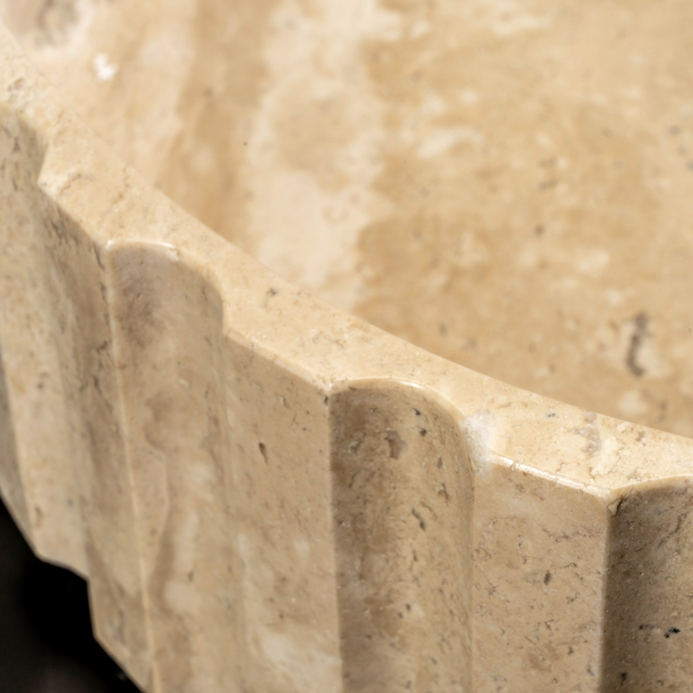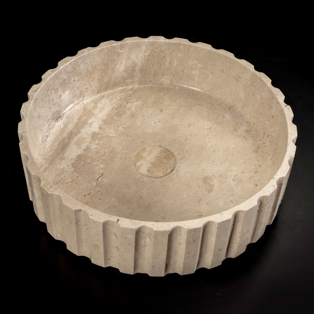 De travertijnen wastafel combineert vakmanschap en een verfijnde luxe-esthetiek. Elk stuk, gesneden uit één blok travertijnmarmer, is uniek dankzij de kenmerkende aderen en kleurvariaties die het exclusief maken. De click-clack waste , gemaakt van hetzelfde marmer, maakt niet alleen het ontwerp compleet maar zorgt ook voor een onberispelijke functionaliteit. Deze wastafel is een elegante keuze voor wie op zoek is naar een waardevol meubelstuk dat een badkamer in een luxe ruimte kan veranderen.