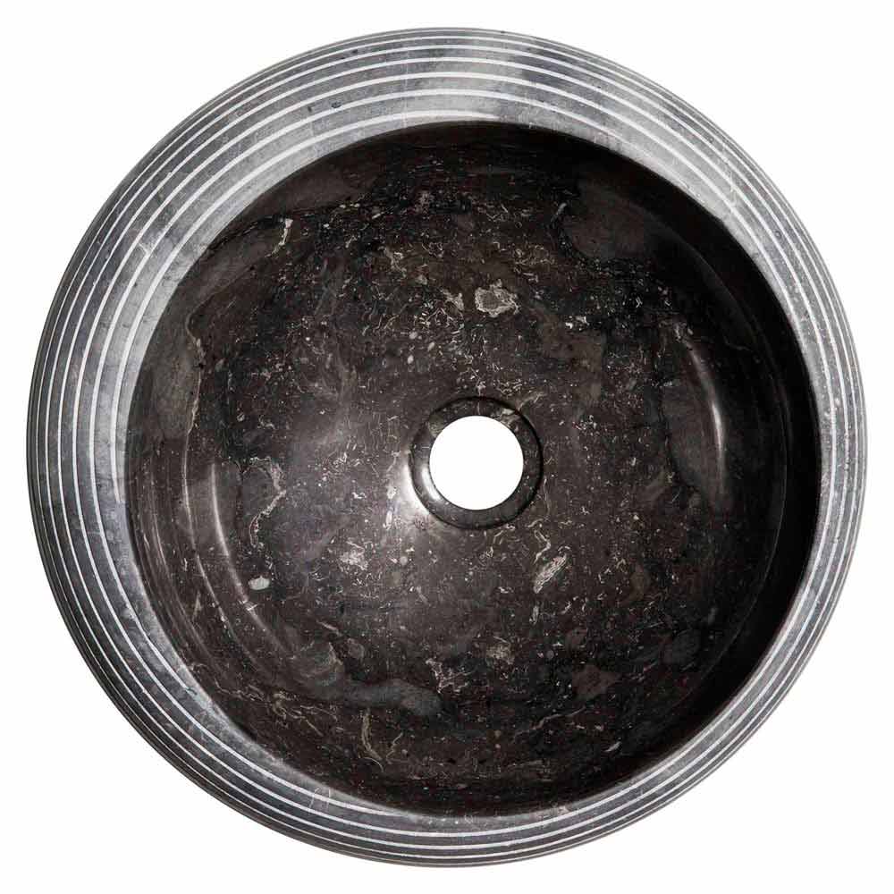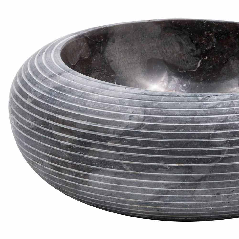 Bubbio is een ronde wastafel op het aanrecht, met de hand vervaardigd in grijs marmer.