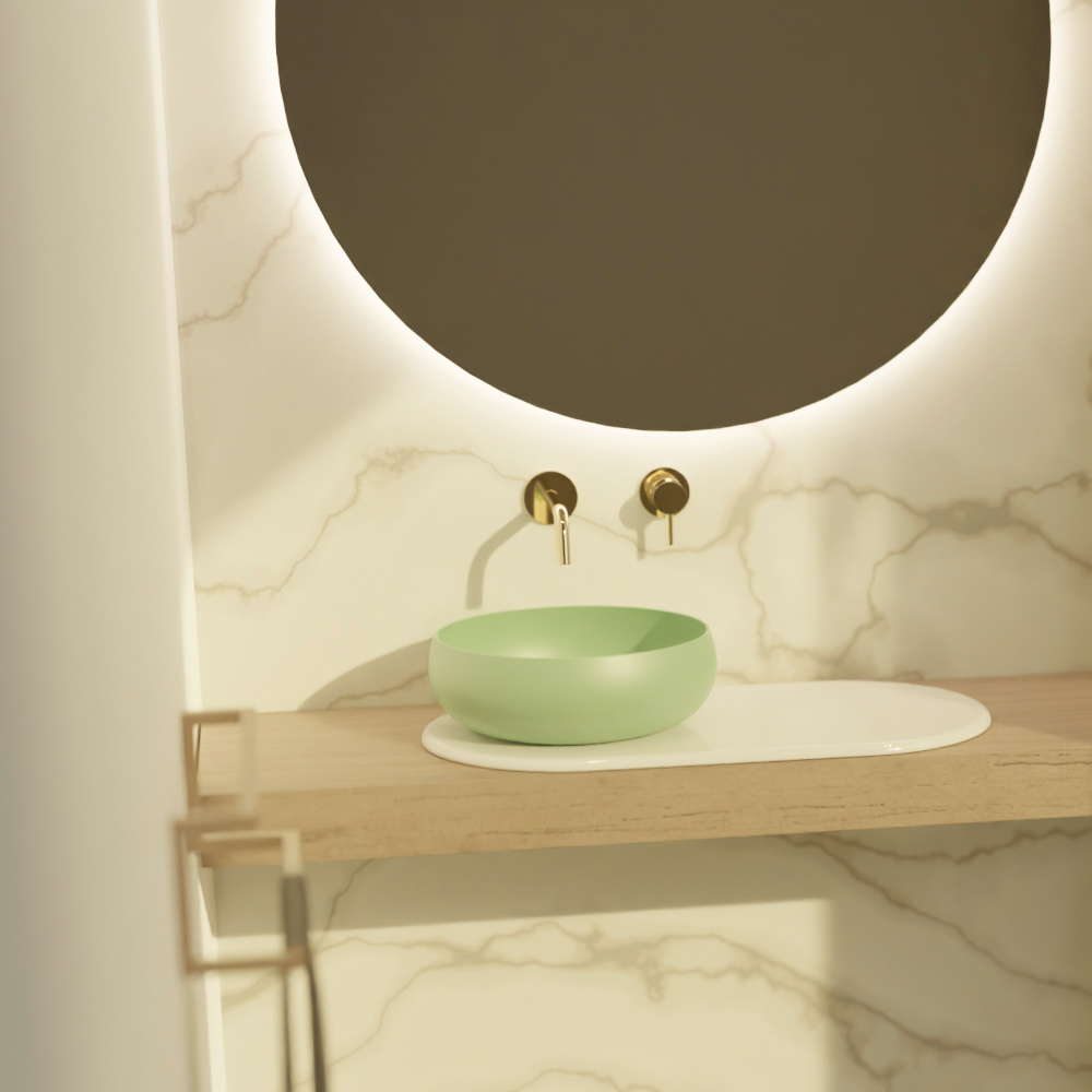 Deze ronde keramische spoelbak is een meesterwerk van minimalistisch design en functionele elegantie. De perfect ronde vorm, gecombineerd met de beschikbare delicate tinten, roept een gevoel van sereniteit en zuiverheid op, waardoor de badkamer wordt getransformeerd in een toevluchtsoord van rust en stijl.