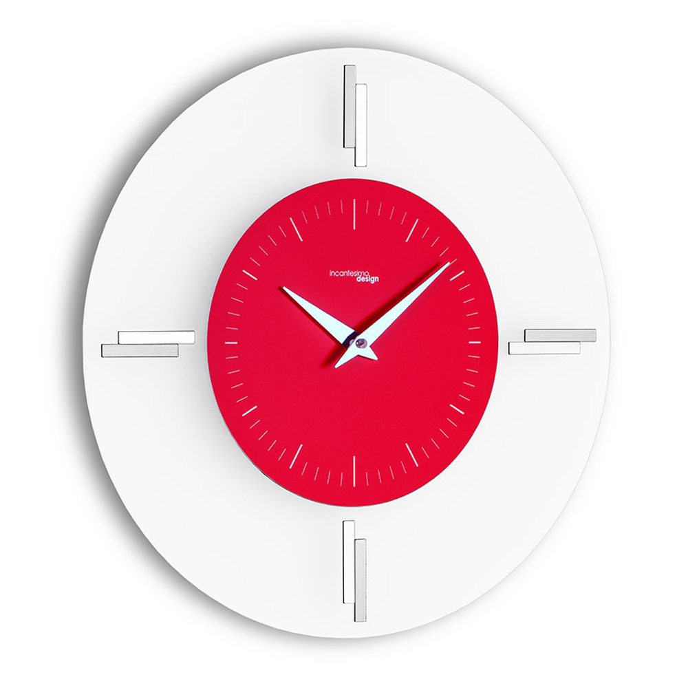 Ronde wandklok van methacrylaat en aluminium, gemaakt in Italië.