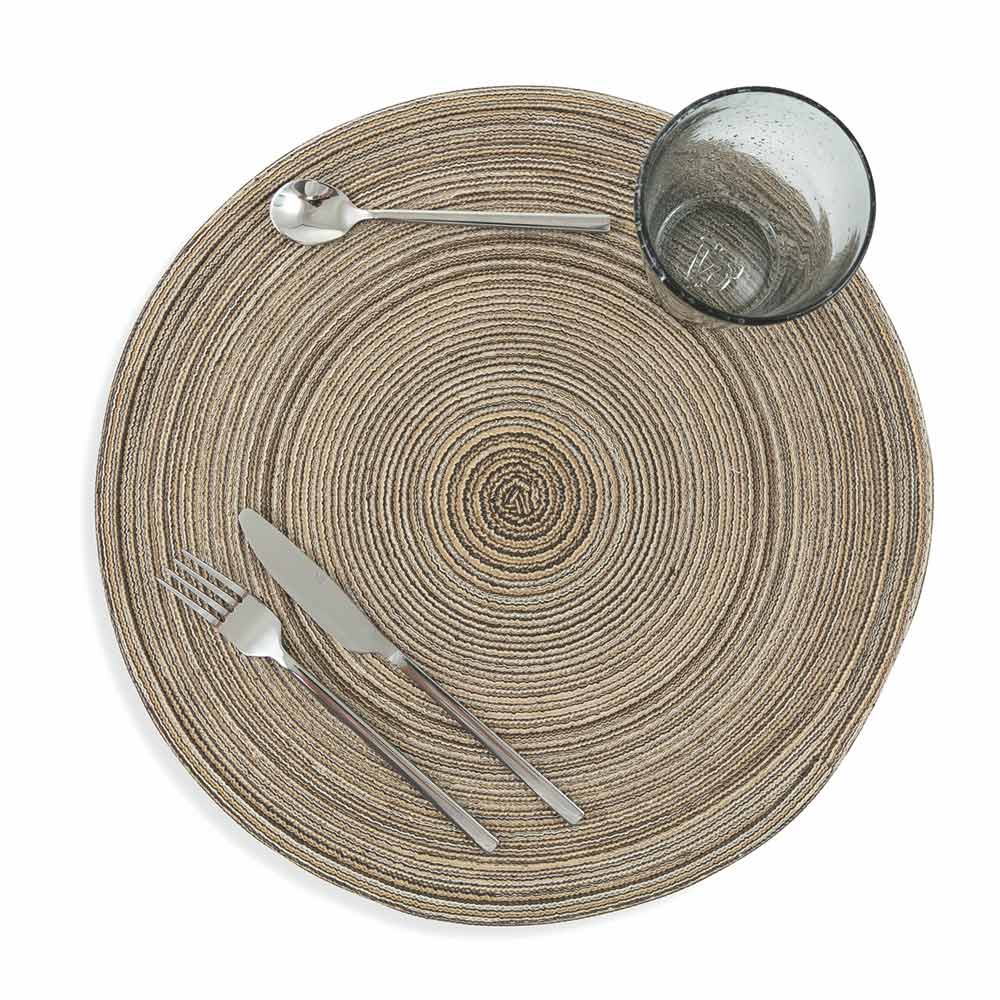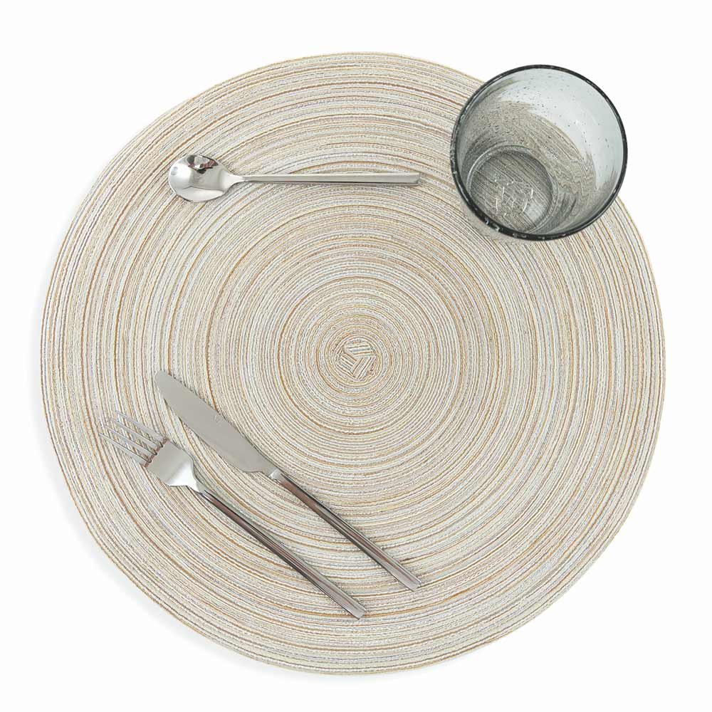 Ronde placemat set in wit of bruin polyester, 12 stuks.