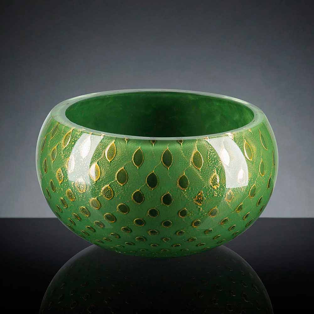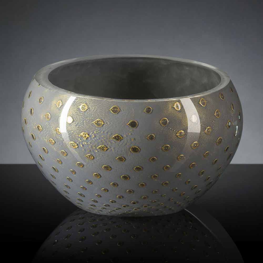 Ronde binnenvaas in gekleurd Murano geblazen glas Made in Italy.