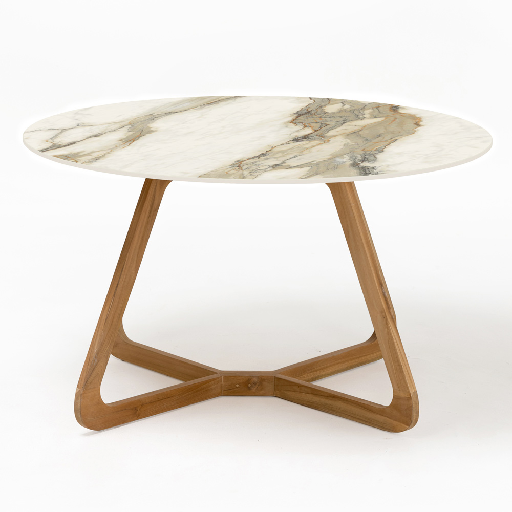 Ronde tuintafel van hout en keramiek, Made in Italy