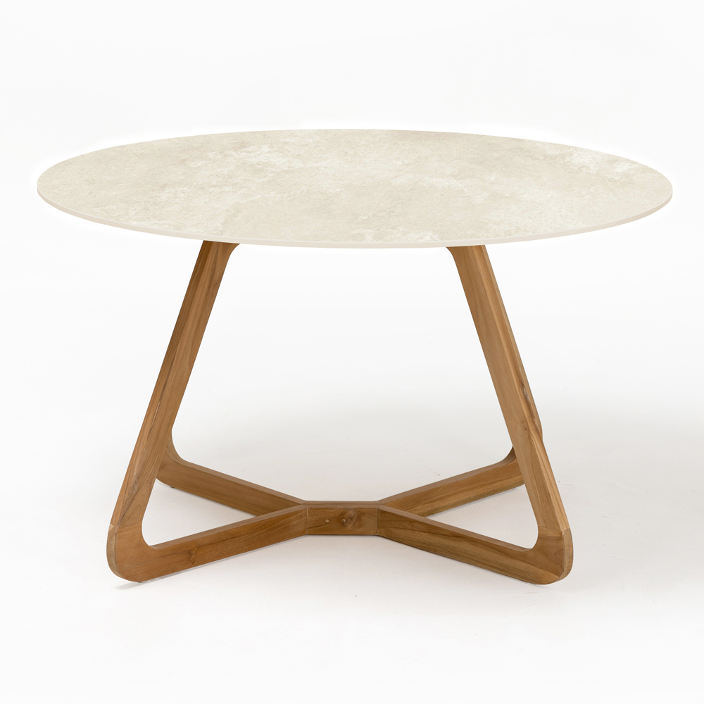Ronde tuintafel van hout en keramiek, Made in Italy