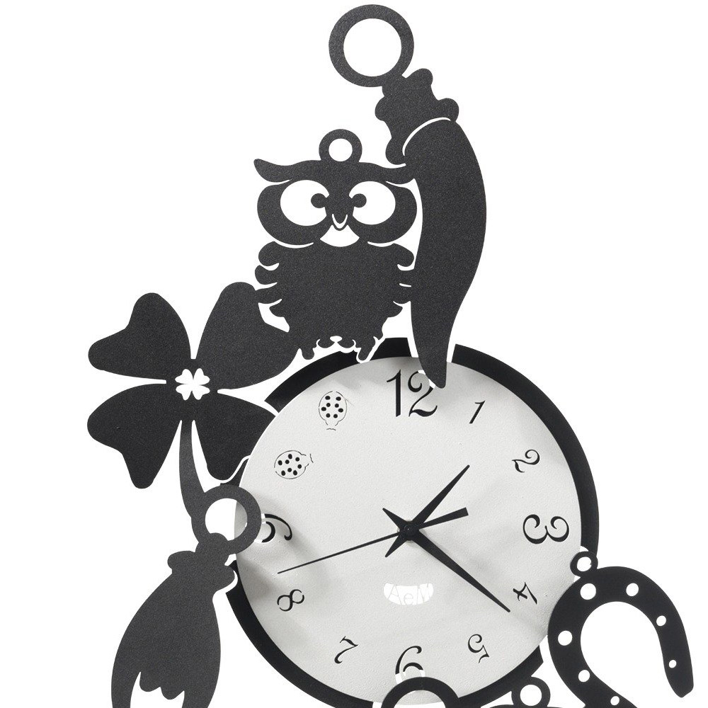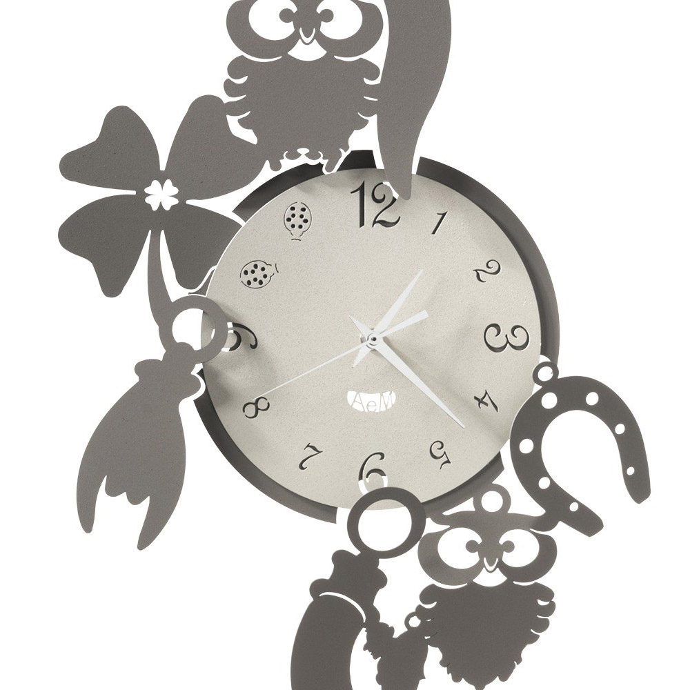 Ronde design ijzeren wandklok met geluksbrengers in 3 afwerkingen made in Italy.