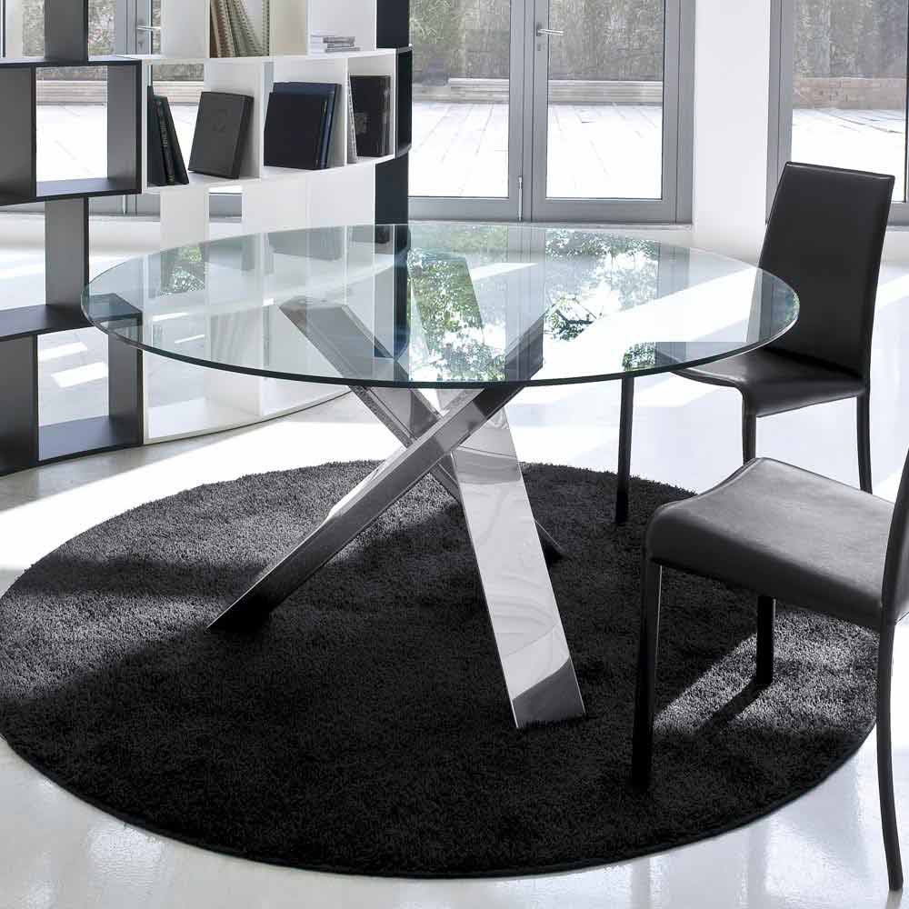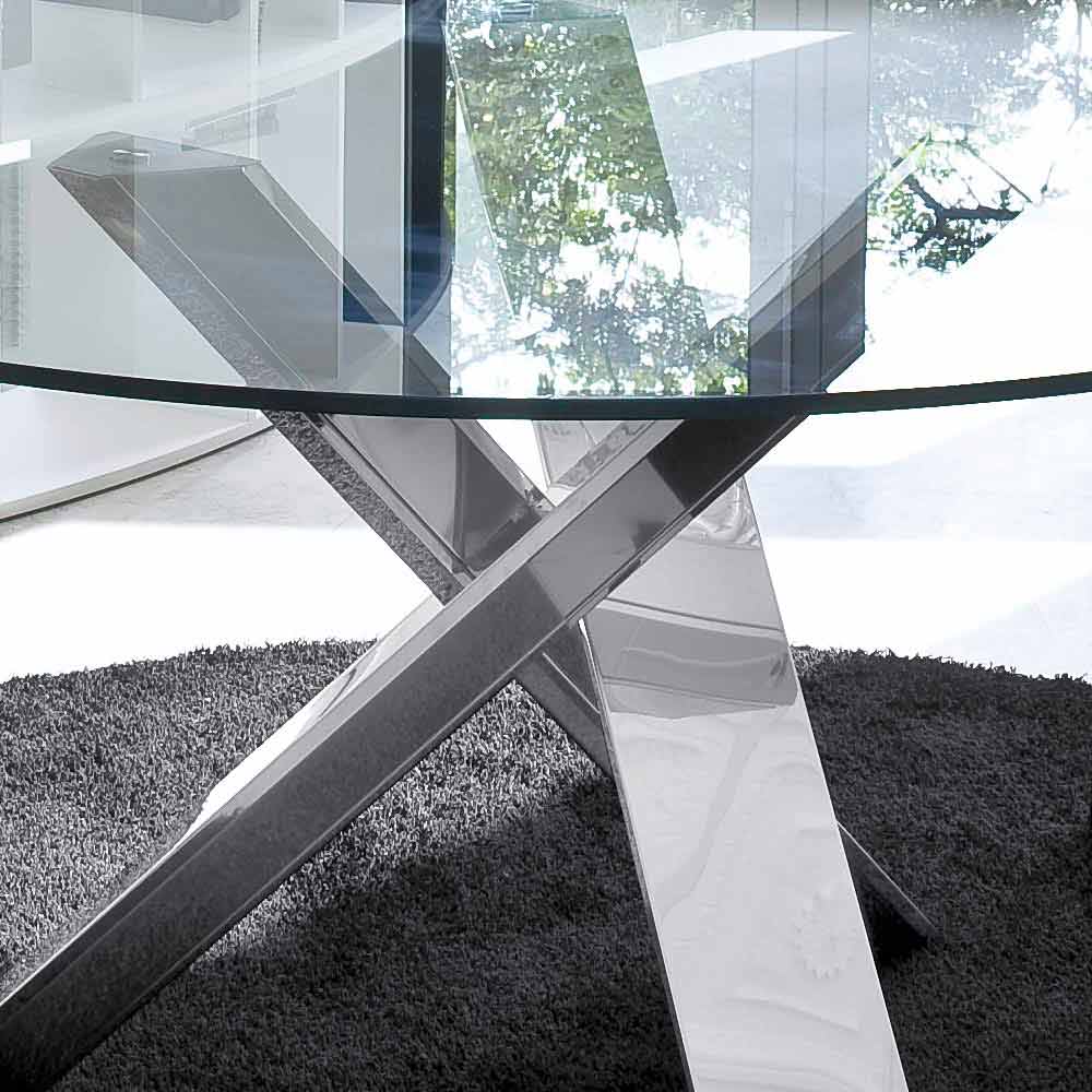 Ronde designtafel d.150 glazen bovenkant gemaakt in Cristal, Italië