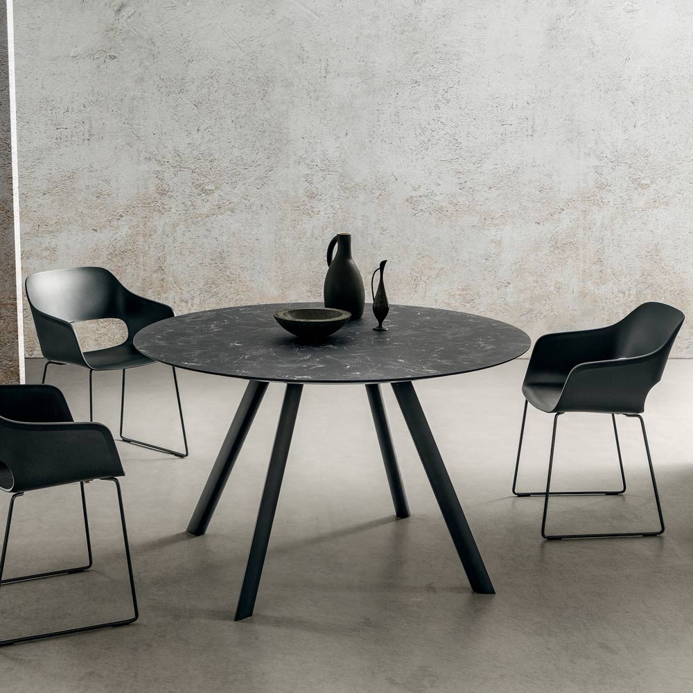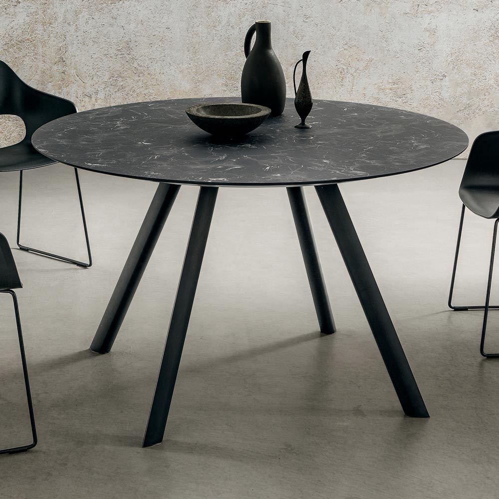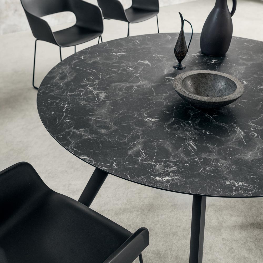 Ronde eettafel in gelaagd hpl en aluminium Made in Italy, hoge kwaliteit.