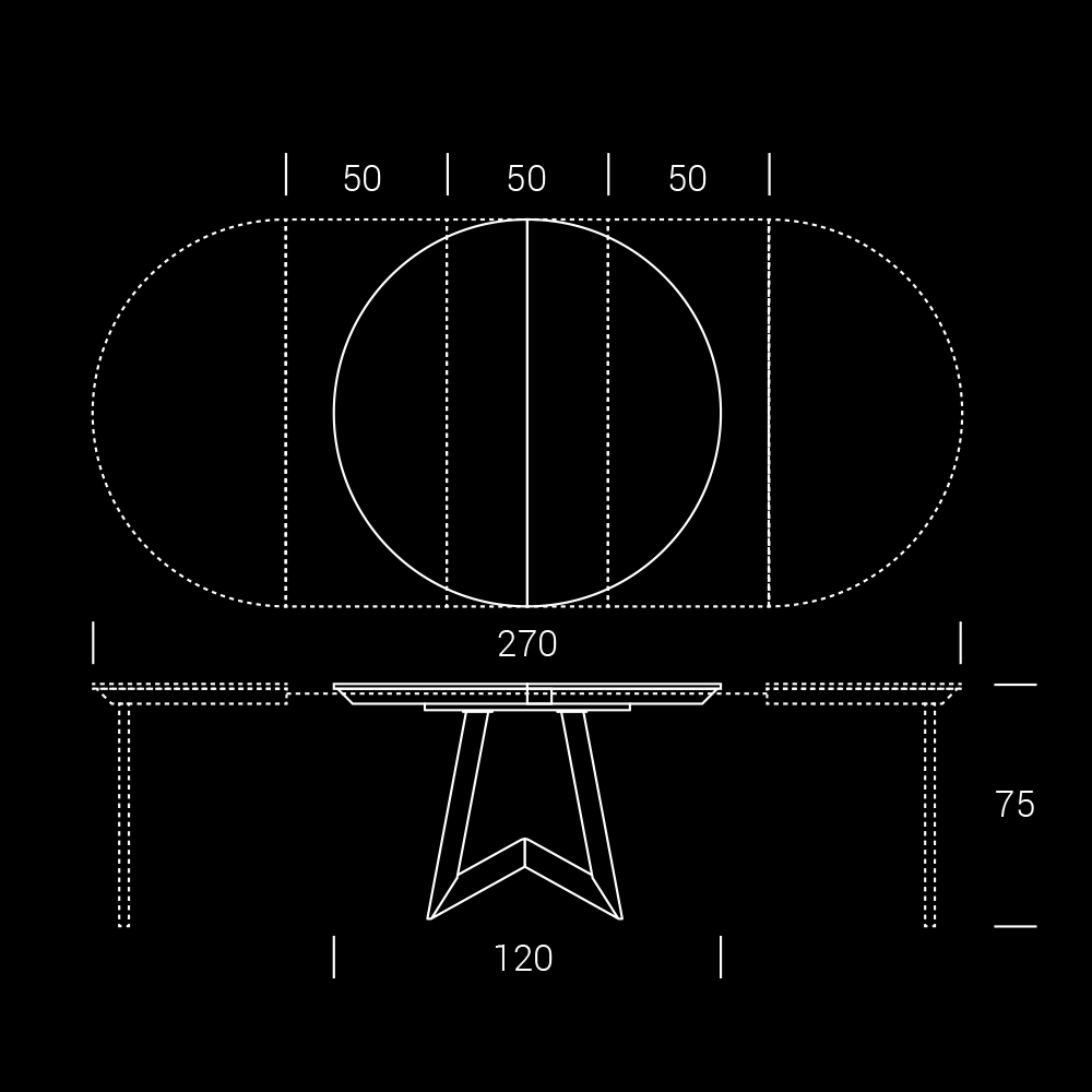 keramisch blad dat is verdeeld in twee halve vlakken om plaats te bieden aan de 3 externe uitbreidingen, waardoor het oppervlak en de mogelijkheden voor gezelligheid worden vergroot.