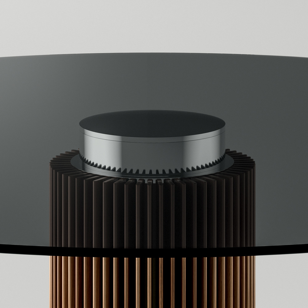 elegante en sculpturale structuur , komt dit meubel voort uit de combinatie van materialen van verschillende aard samen met de passie voor het bewerken van glas, waardoor het erin slaagt om een representatie van kracht en karakter te definiëren door middel van verschillende vormen en diktes.