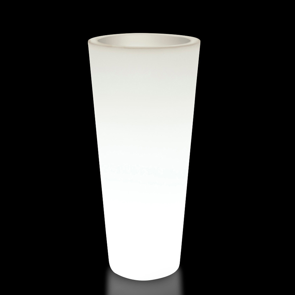 Ronde fluokleurige tuinvaas met licht Made in Italy