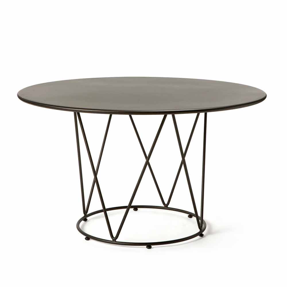 Moderne ronde buitentafel, geheel vervaardigd uit gepoedercoat gegalvaniseerd ijzer, Made in Italy.