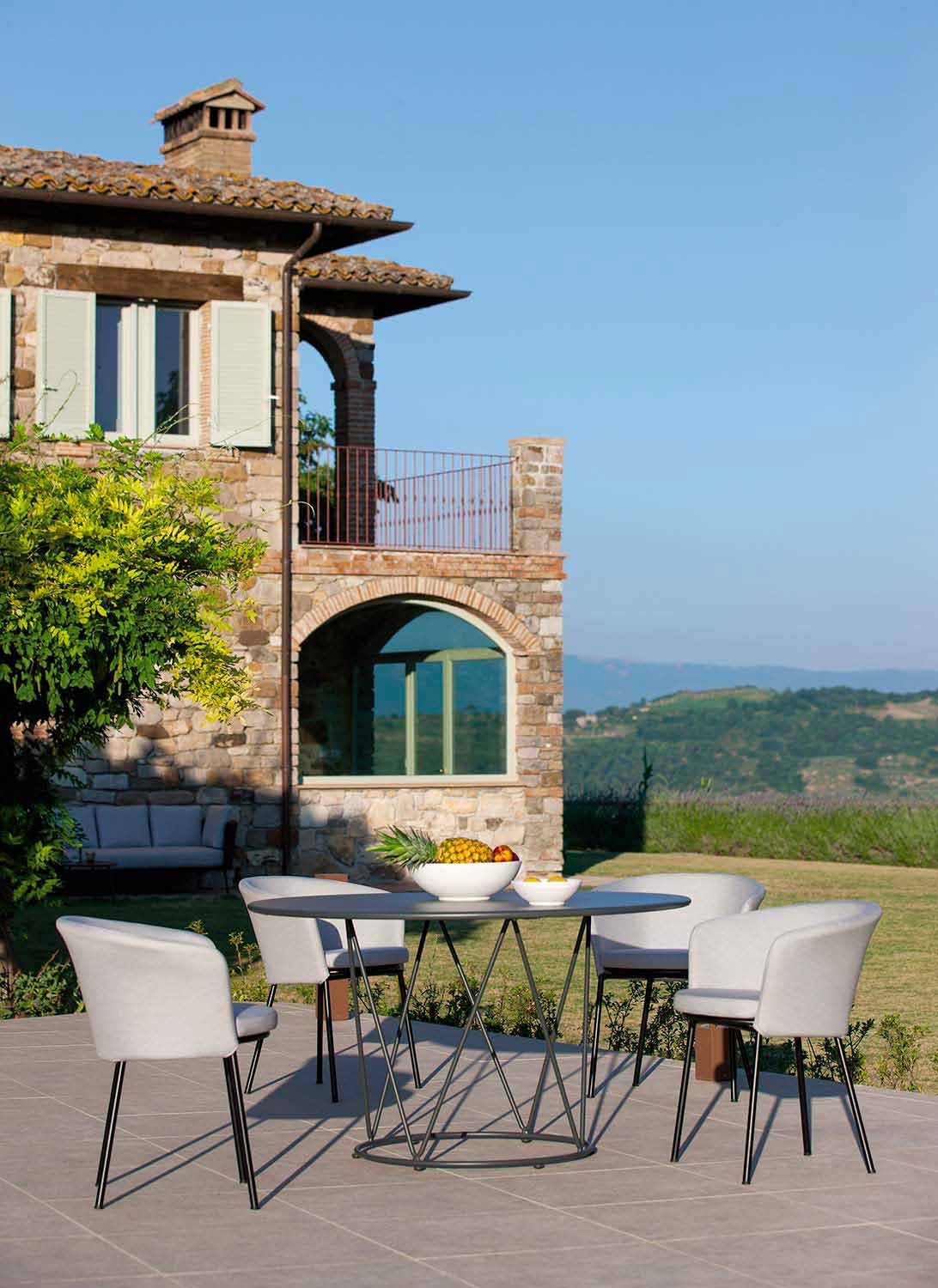 Deze lijn Made in Italy-producten kenmerkt zich door een eigentijdse smaak, waarbij het centrale element het gebruik van essentiële geometrische lijnen en vormen is. Deze creëren een dynamische en tegelijkertijd functionele sfeer en maken elk stuk gemakkelijk te integreren in elke buitenomgeving. Elk product uit deze lijn is ideaal voor de complete inrichting van buitenruimtes en zorgt voor een perfecte combinatie van functionaliteit en visuele en decoratieve aspecten dankzij de hoogwaardige materialen en innovatieve technieken die een prachtige matte afwerking geven.