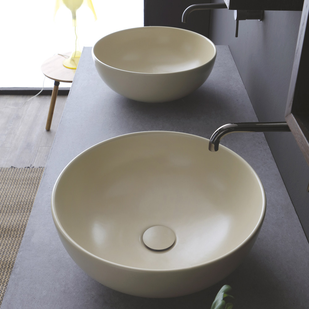 Ronde opzetwastafel van gekleurd keramiek met een matte afwerking door 100% Made in Italy vakmanschap . Eenvoud en veelzijdigheid komen samen om dit prachtige meubelstuk tot leven te brengen met een minimale en verfijnde stijl , ontworpen om elke moderne badkamer te completeren en een vleugje persoonlijkheid en elegantie met zich mee te brengen.