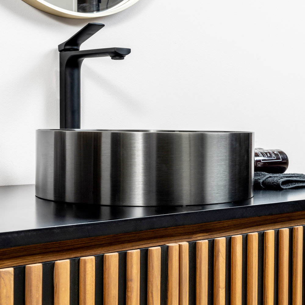De ronde aanrechtspoelbak van 3 mm SUS 304 roestvrij staal is een juweel van design en functionaliteit. Het is vervaardigd uit één stuk metaal en biedt een strakke, moderne esthetiek. De afwerkingsbehandeling met PVD+Nano-coating , gecombineerd met nauwgezet borstelen, geeft een aantrekkelijk en bijna raadselachtig uiterlijk aan het object, waardoor de glans en de weerstand tegen vlekken en krassen worden verbeterd. Het ontwerp wordt gekenmerkt door uitgebalanceerde vormen en ideale verhoudingen, beschikbaar in drie afwerkingen die zich elegant aanpassen aan elke omgeving. Bovendien verheffen verfijnde details zoals de bijpassende afvoerafdekking en de totale afwezigheid van zichtbaar laswerk deze wastafel tot een waar meesterwerk van vakmanschap en design, waardoor het een opvallend stuk is voor badkamers met een luxe en eigentijdse uitstraling.