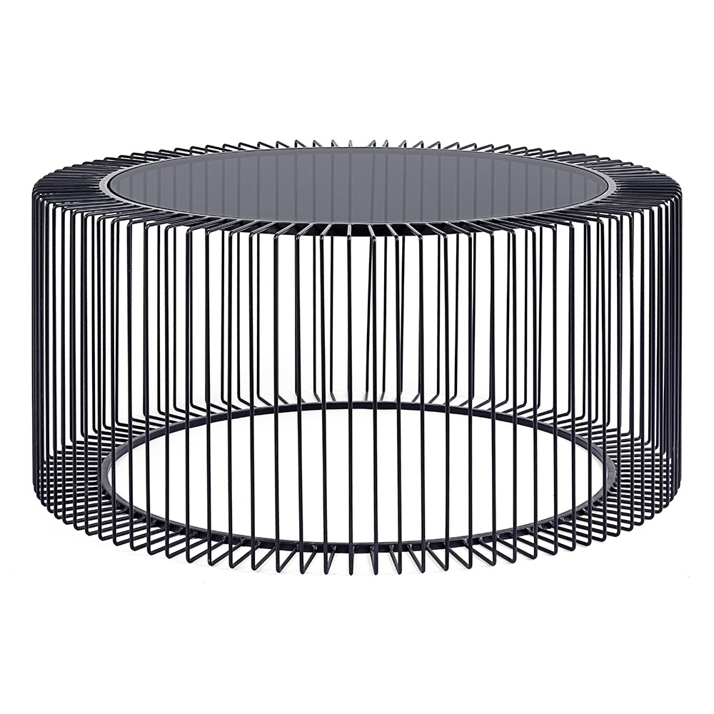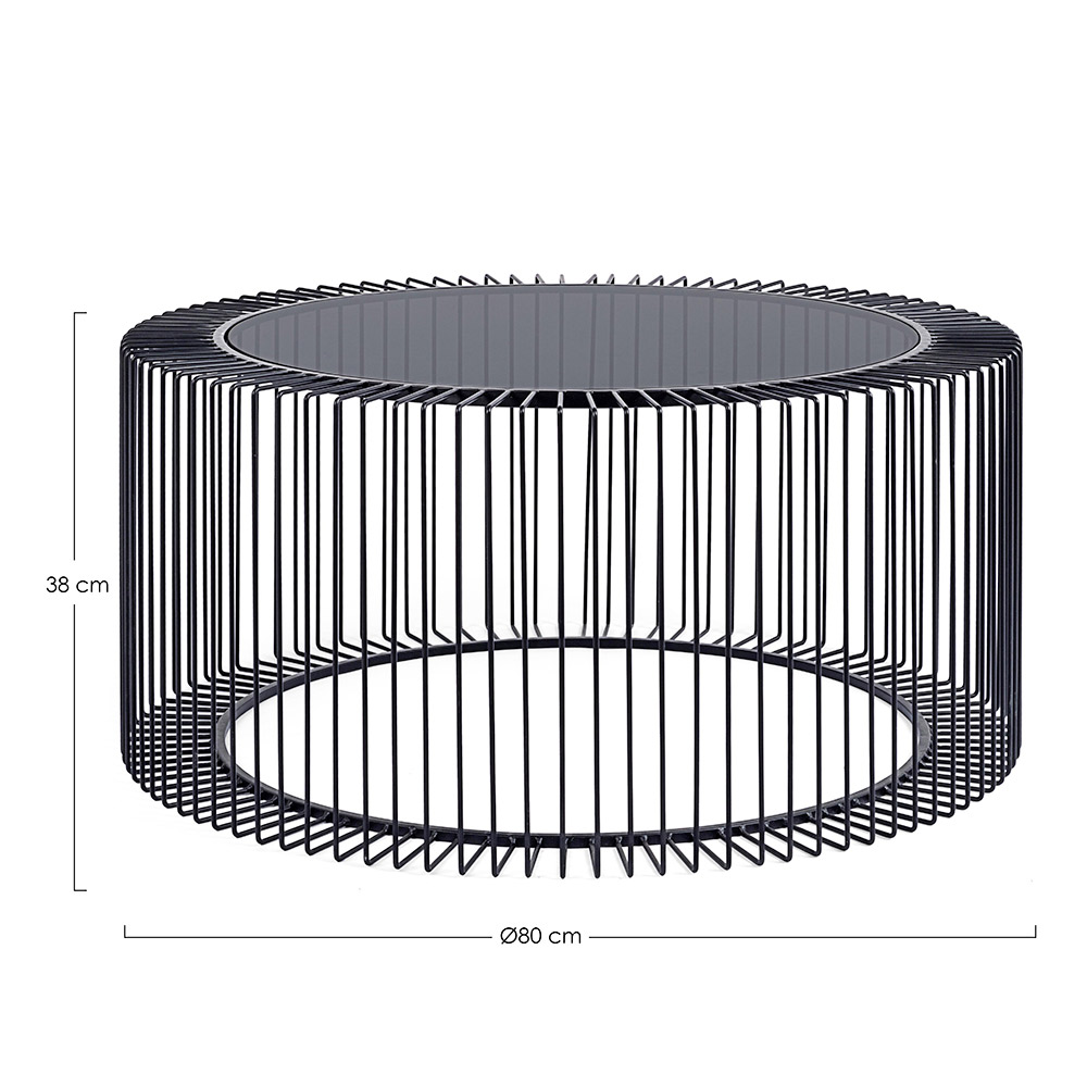 Ronde salontafel in gelakt staal en gehard glas - Apuleio