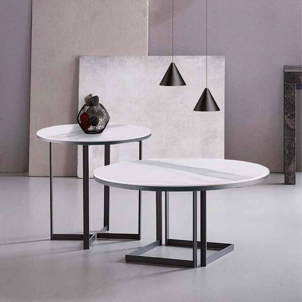 Moderne salontafel in gelakt metaal met marmereffect steengoed blad, hoge kwaliteit Made in Italy.