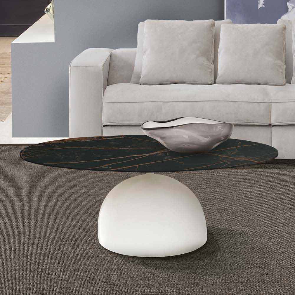 Salontafel met keramisch blad en metalen onderstel, hoge kwaliteit Made in Italy.
