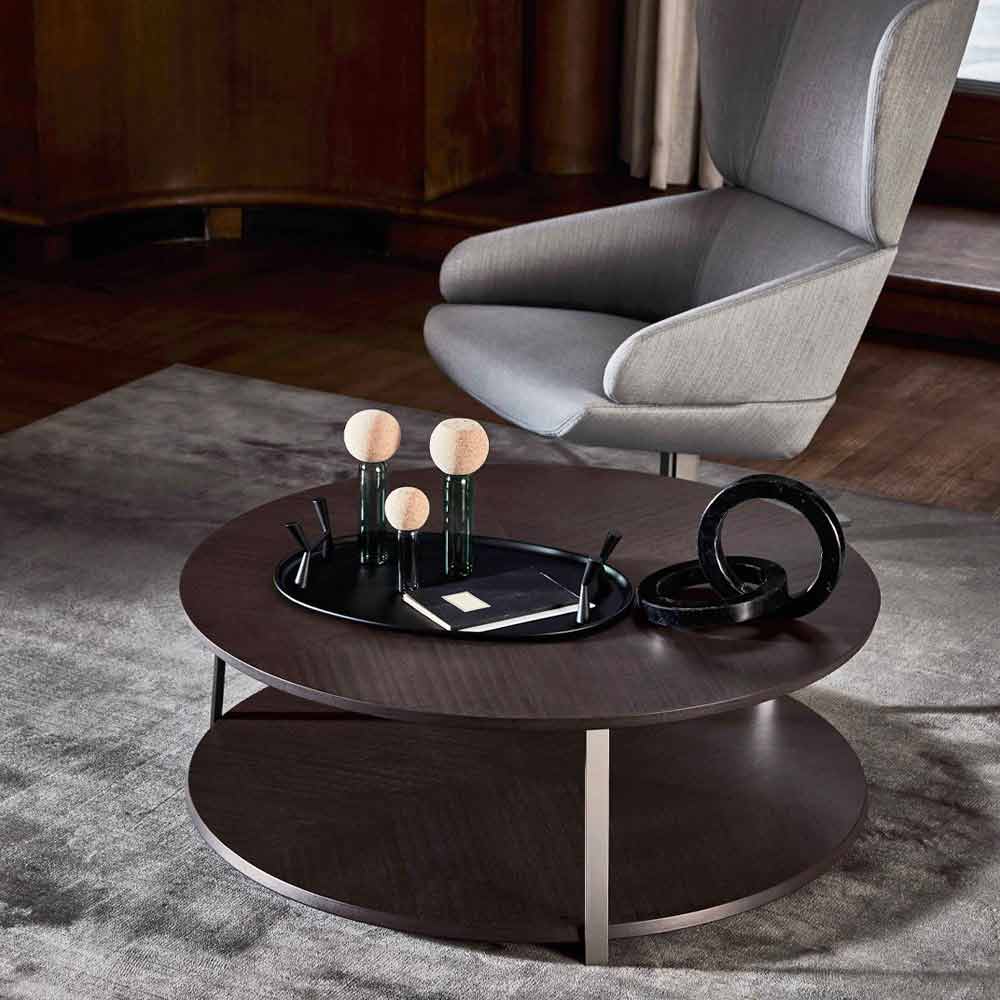 Ronde salontafel in mdf met metalen structuur Made in Italy, luxe.